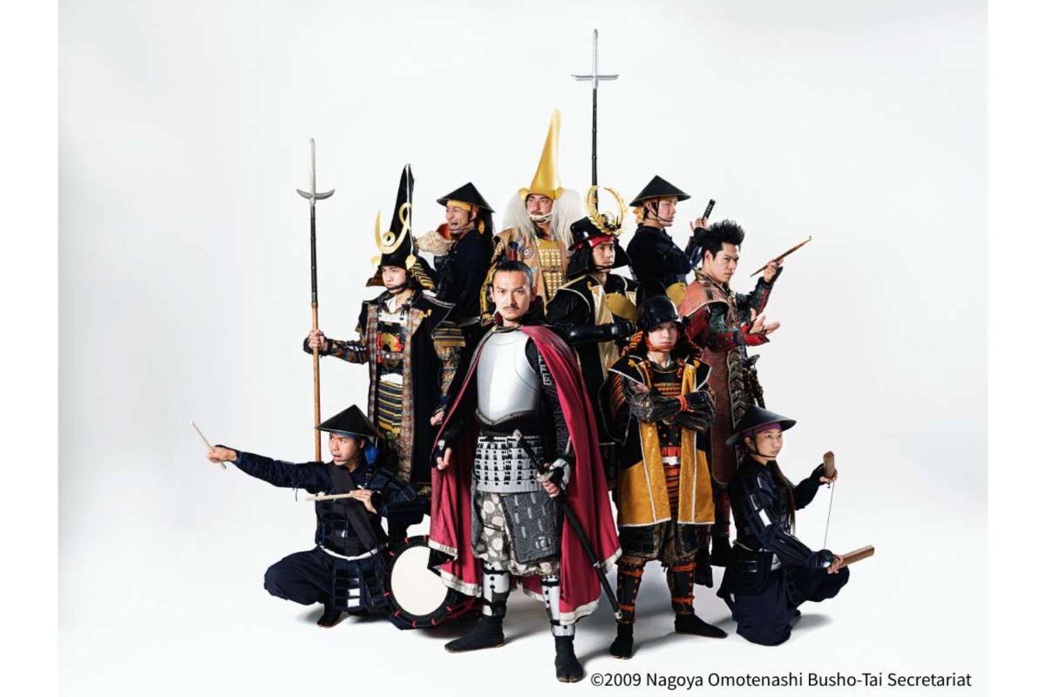 我ら名古屋おもてなし武将隊は、名古屋に縁ある武士6名と、それを支える陣笠隊4名からなる武士集団である。名古屋を世界一の観光都市にするべく、名古屋の魅力を世界に発信しておる。