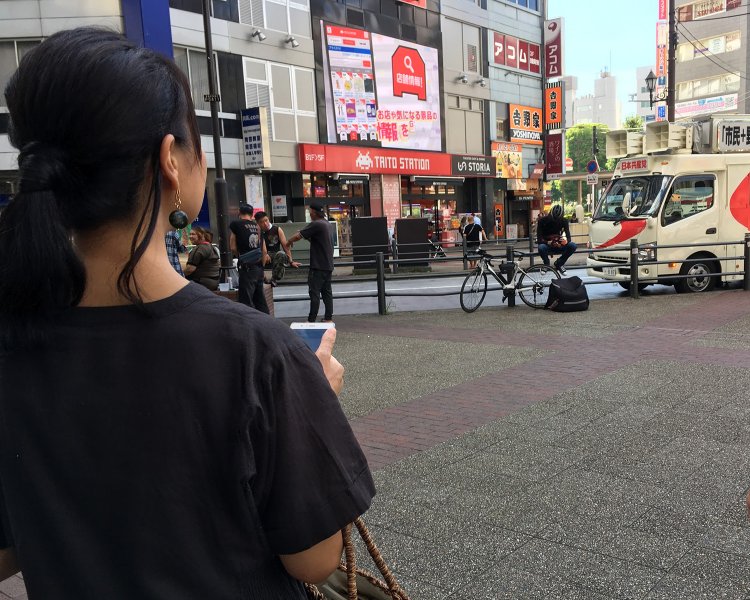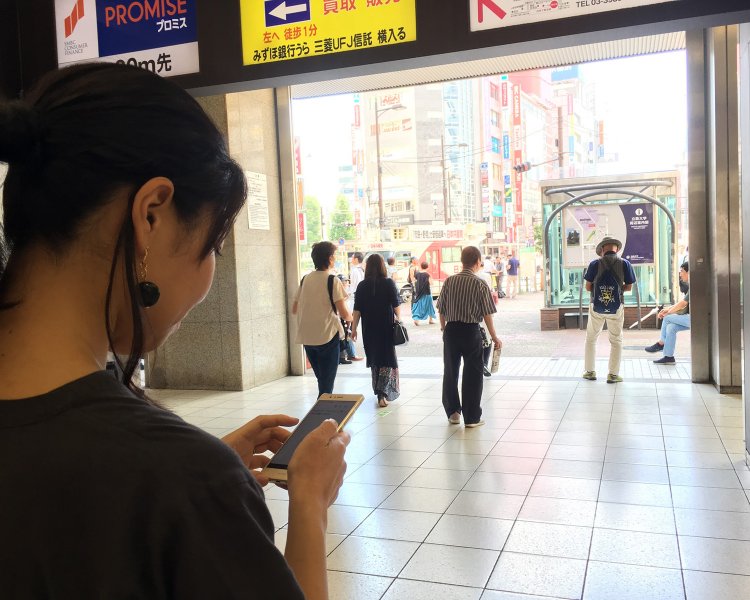 中村 : 見てましたけど、グーグルマップ上の現在地を表す印がちょっと遅れていたんですよね。吉玉さんは「すいどーばた美術学院」の角を曲がっていたのに、画面上の印は角を曲がる手前にあったんです。調べてみたら、GPS機能って多少の誤差は避けられないみたいです。