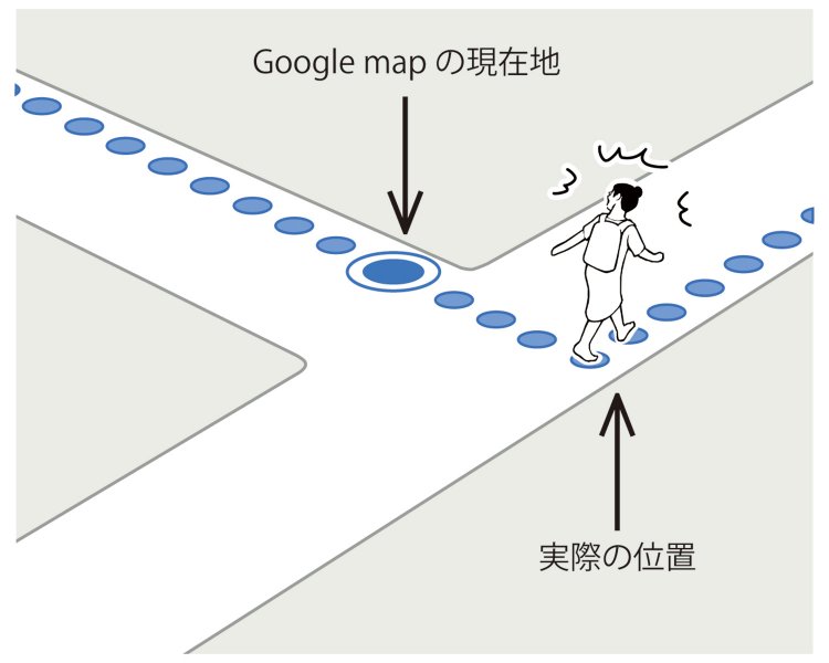 - グーグルマップ上の現在地の表示に誤差があるとパニックになる