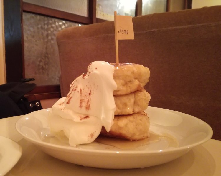 『lamp』はパンケーキが評判のお店。想像と違うパンケーキが出てきてテンション上がりました。ずっしりしていて食べごたえがあり、美味しいです。
