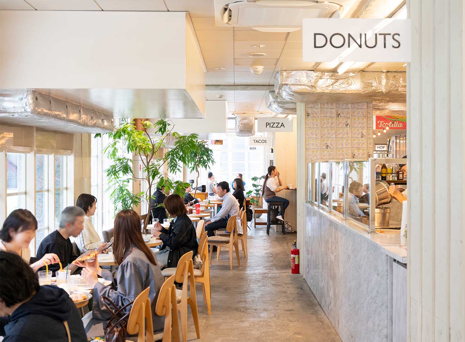 オフィス街と思いきや、小伝馬町にはビジネスマン以外にもいろんな人がいる。ピークタイムを外し、早めのランチをしに『COMMISSARY』に行くとすでにほとんどの席が埋まり、とてもにぎわっていた。近隣のホステルをチェックアウトしてきたと思しき外国人のバックパッカーや、普段着の親子連れも混ざっていて、和気あいあいとした雰囲気。
