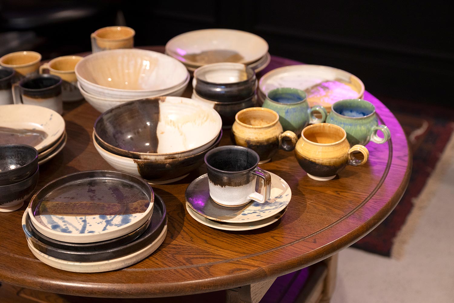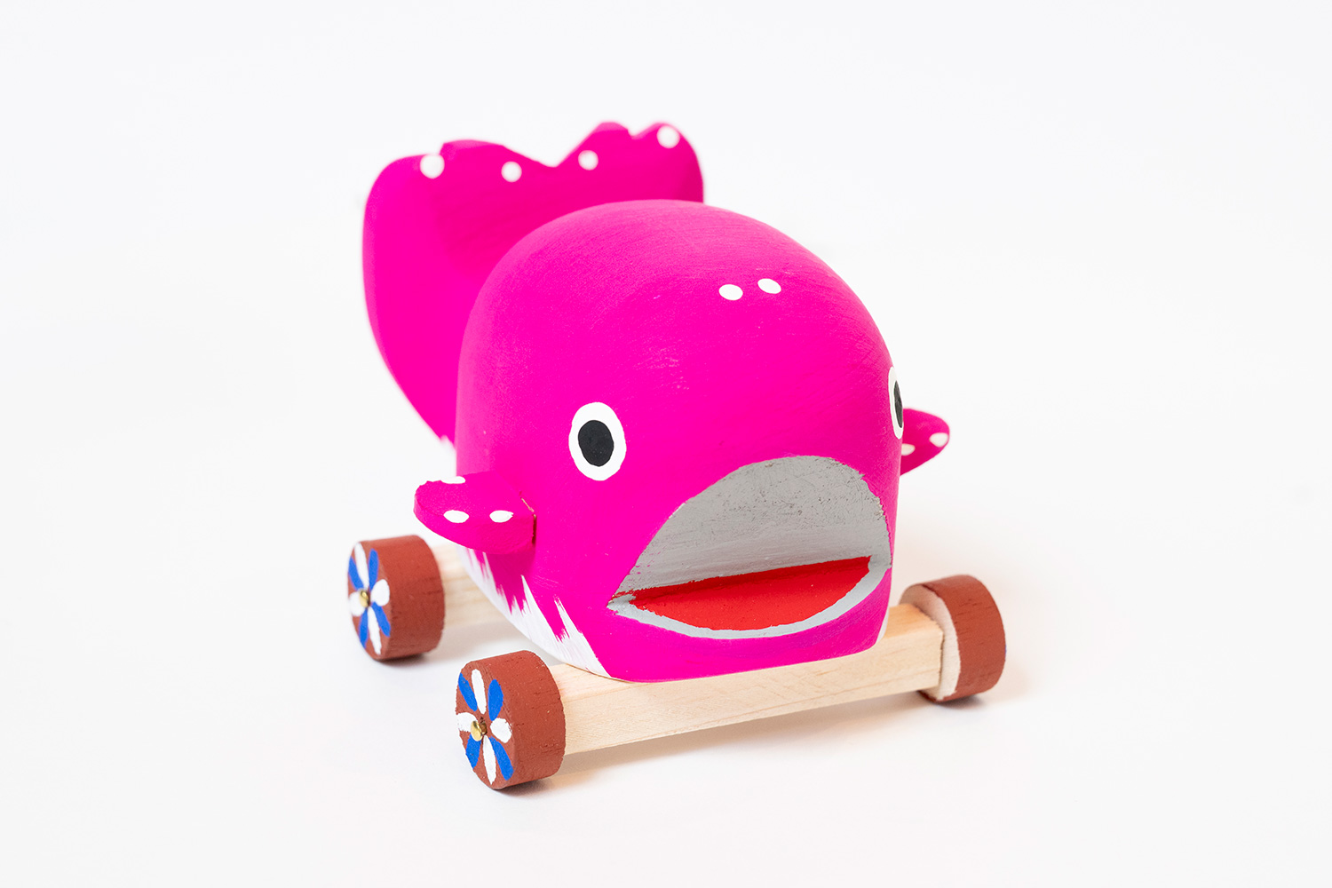 卸商社が集まるオフィス街で異彩を放つピンクののれん。扱っているのは作家や窯元の器、郷土玩具、フレグランスで、オリジナル商品も多い。オーナーの橋本悟さんいわく、水滴のようなドット柄の器は「雨が降った後のアスファルトをイメージ」。鯨車は高知の張り子で、店のテーマカラーであるピンク(別注)が近日入荷予定。