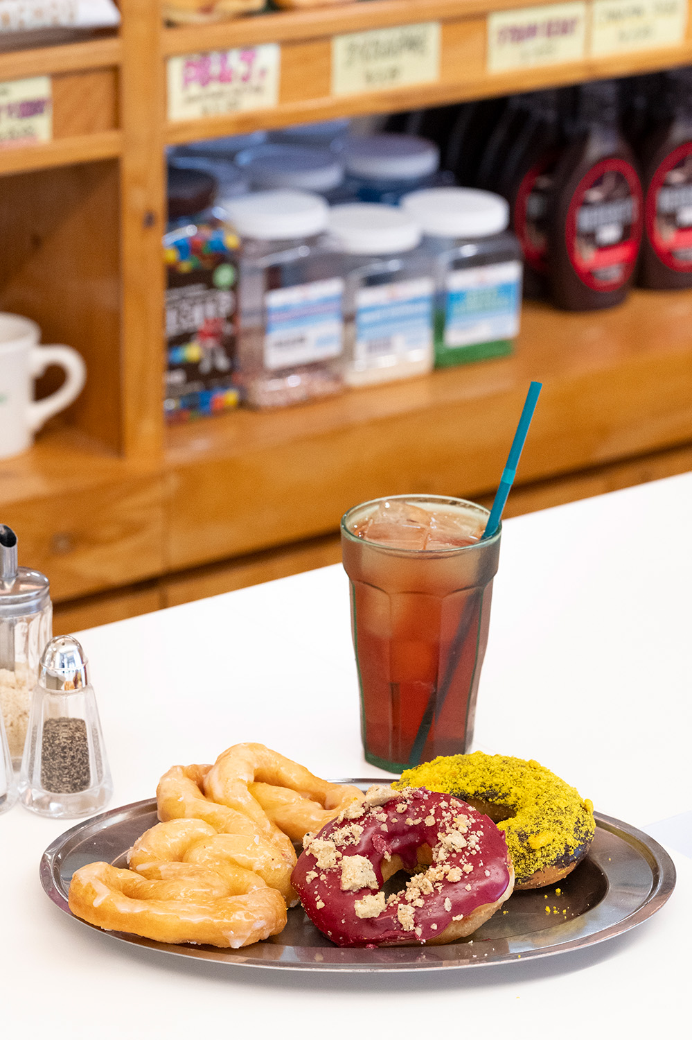 並んでいるのは、オーナーの田渕諒さんが愛情たっぷり手作りしたドーナツ。パッと見、大きめだが、食べるとふわっとして歯切れも良く、軽い食感なので2個、3個とつい手が伸びる。一つ一つ形が若干違うのは「味のあるいびつさ」と、もう一人のオーナーの三上龍馬さんがにっこり。『COMMISSARY NIHONBASHI』で営業中。