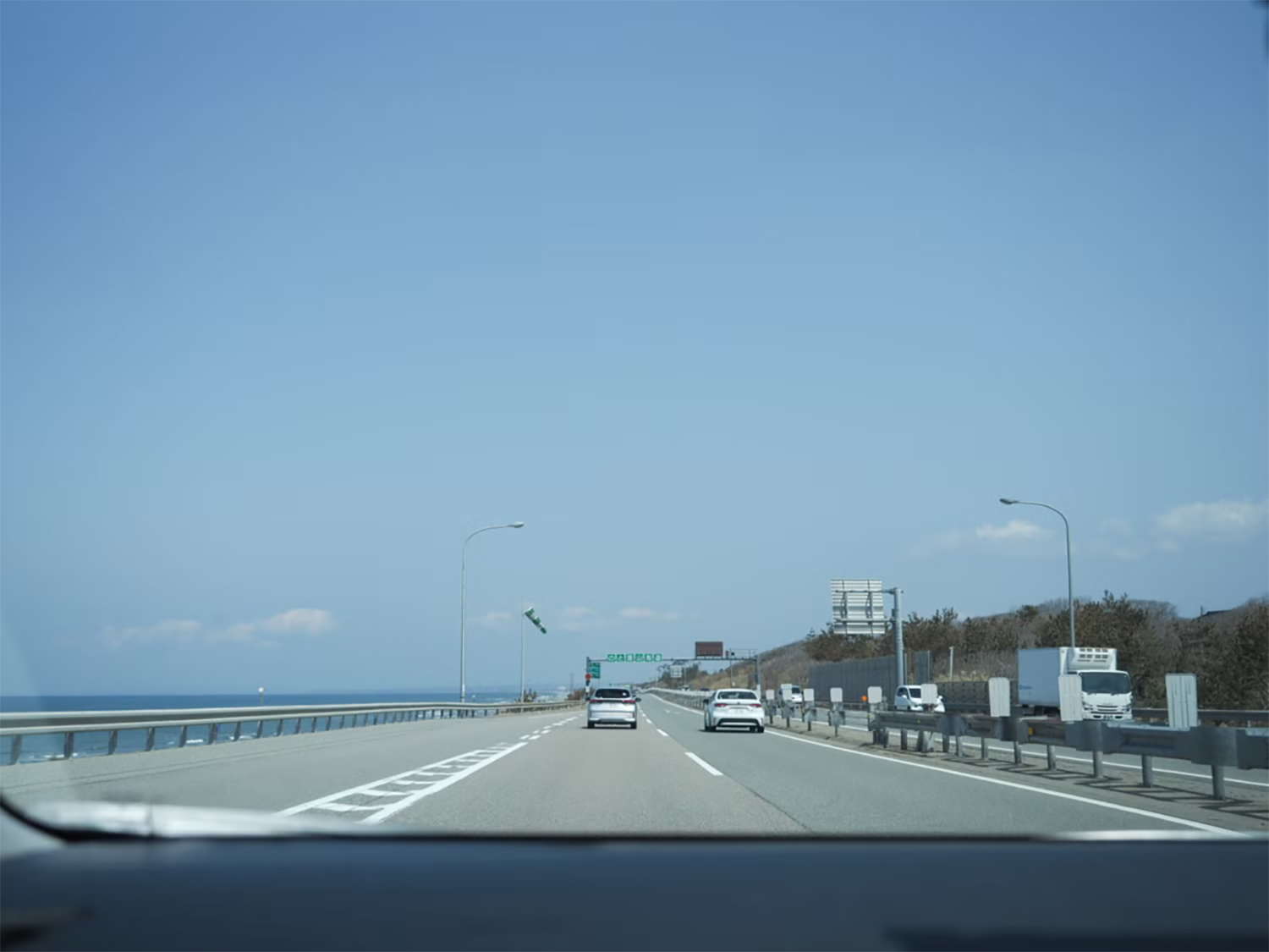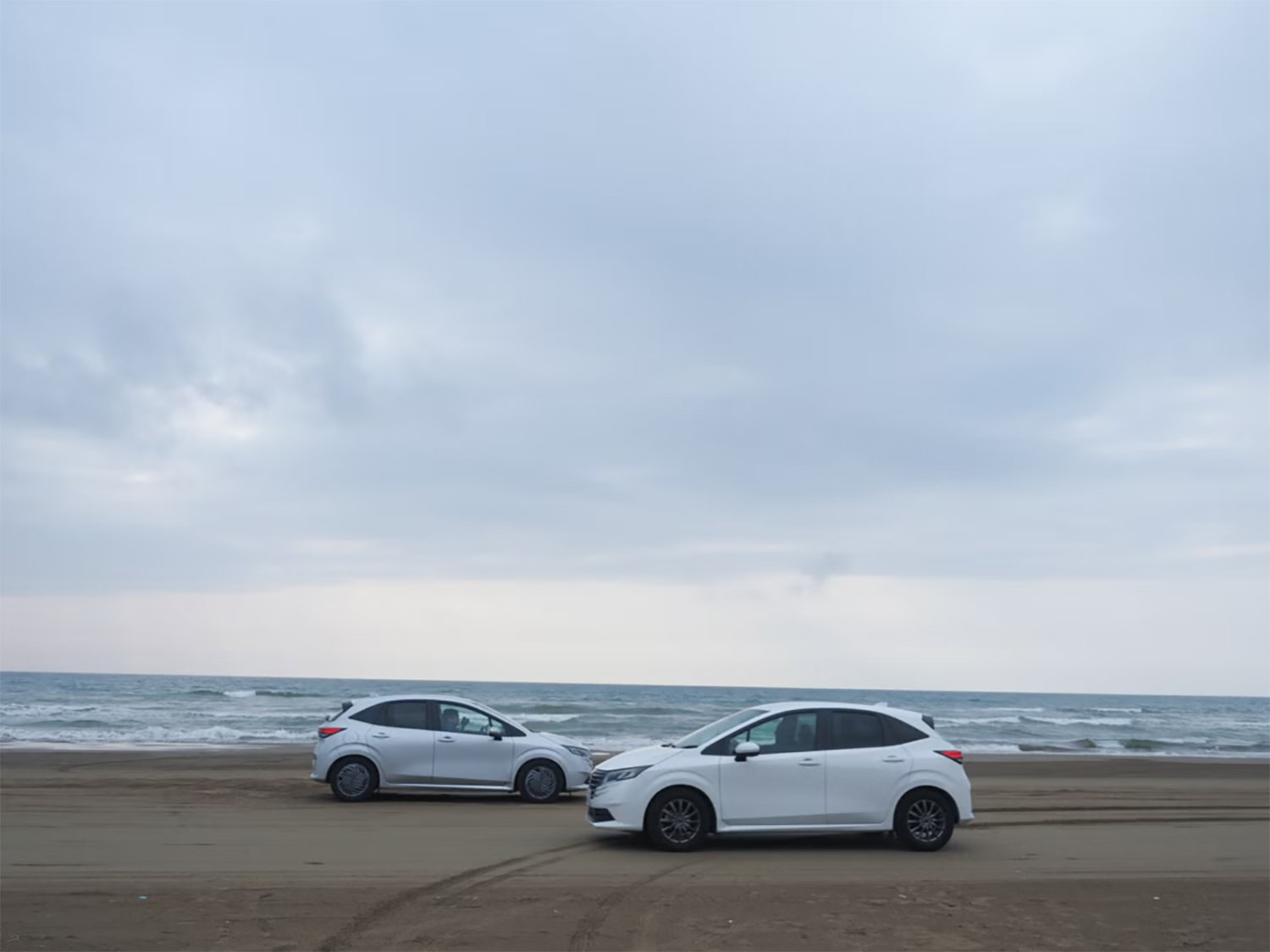 さて、旅はあっという間に2日目の夕方に。金沢へ向かう道中に、絶対に逃せないスポット「砂浜を走れる道路」の「千里浜(ちりはま)なぎさドライブウェイ」に立ち寄ります。砂浜を車で走れる場所は日本でここだけ、世界でも3カ所だけと言われている貴重な場所なのです。すぐ近くの「道の駅 のと千里浜」には、タイヤシャワーが備え付けられているので安心ですね。