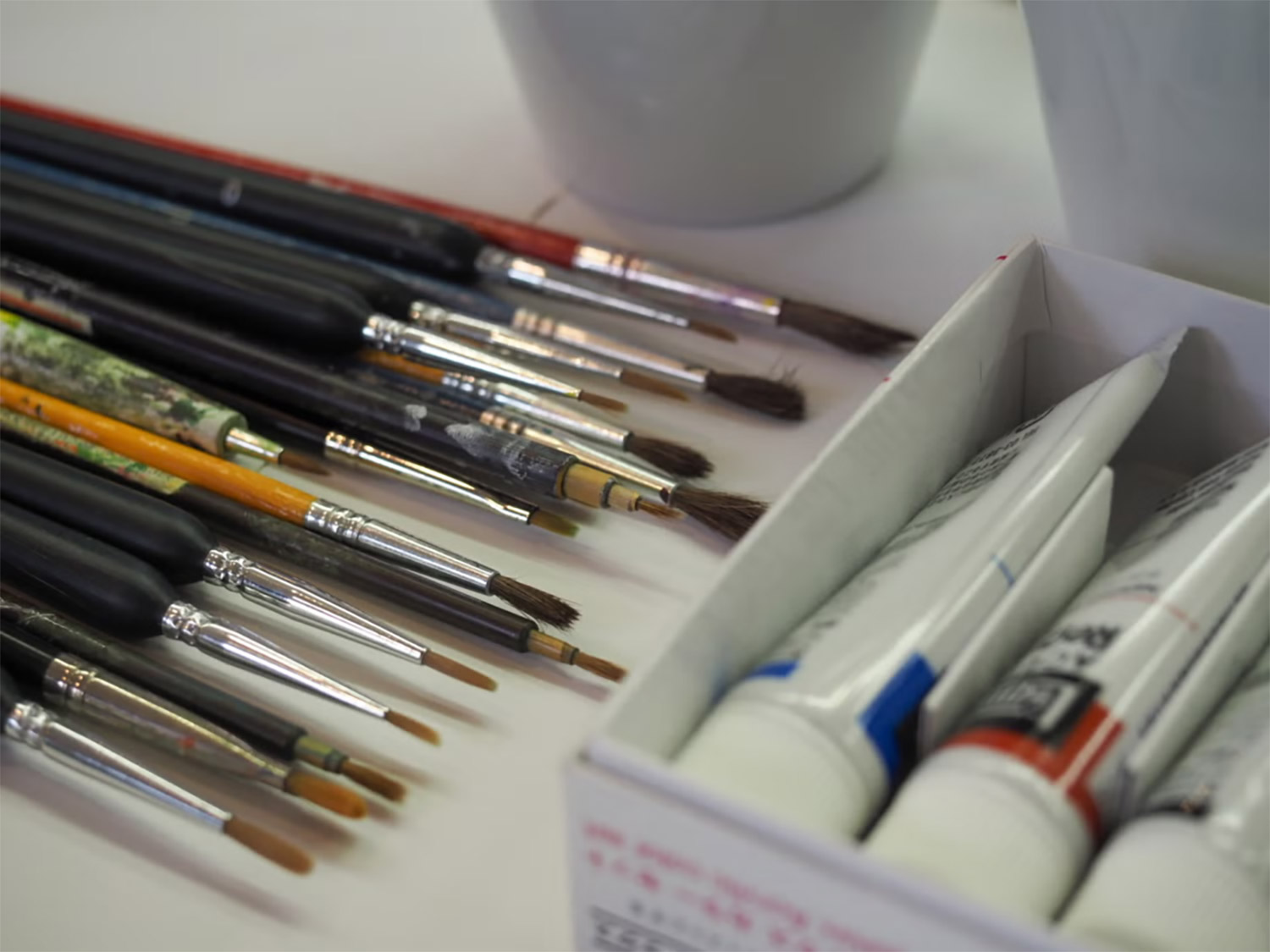 もともと、仏前にお花を供えるのが難しい冬期に花が描かれたろうそくで代わりを果たすものだったそう。今回は自由に絵付けしてみましょうとのことで、絵の具と水と筆、そして1本の和ろうそくを準備していただき、いざスタート!