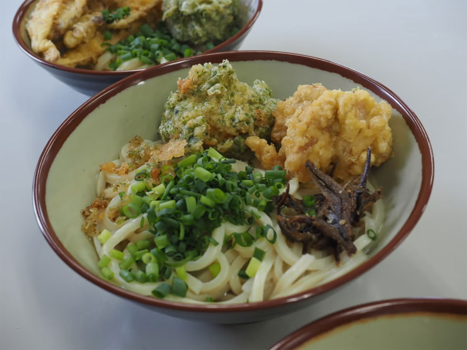 セルフスタイルを売りにしているこのお店、まずは麺の量と冷・温を注文します。温の場合は自分で湯がくスタイル。温かいうどんは「いりこ」と「かつお」のふたつの出汁から、冷たいうどんは「いりこ醤油」とぶっかけ用の「いりこ出汁」から選んでうどんにかけます。さらに天ぷらなどのトッピングを選んだらお会計へ。