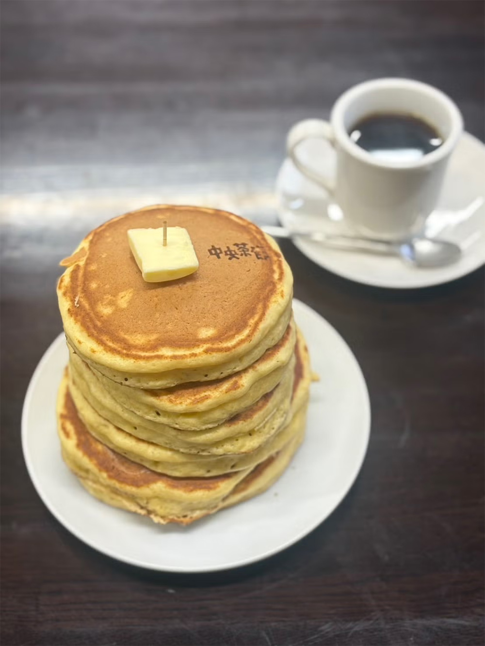『自家焙煎喫茶 中央茶廊 アネックス』に行ったグループからは、6枚も積まれたホットケーキの写真が送られてきました。見てください、この量! 1人では食べきれないので3人で分けたそうです。今は一本杉町の仮設店舗にて営業しているこのお店、1953年創業の老舗の喫茶店なんだそうで、元の店の写真を見るとめちゃくちゃレトロな店内が素敵! 店主さんの思いを知り、あの姿での再スタートを祈らずにはいられません、