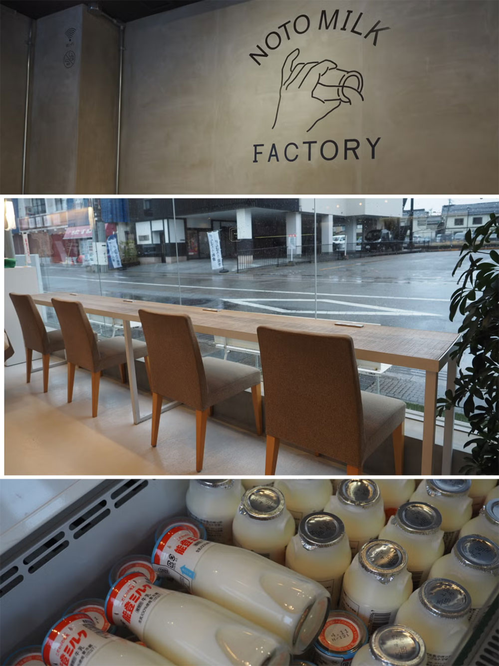 私は能登ミルクと塩キャラメルのジェラートと、ホットミルクを。ミルクジェラートっていろいろなところで食べたことがあるけど、ここのミルクジェラートはめちゃくちゃ好みでした!!! 『能登ミルク』のフォントもレトロを意識しててめちゃくちゃかわいい!