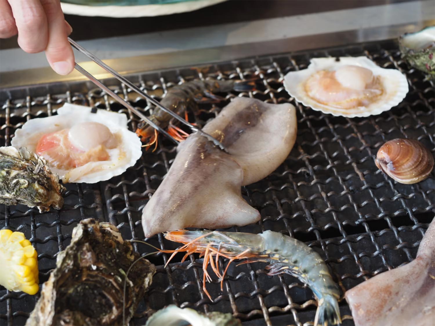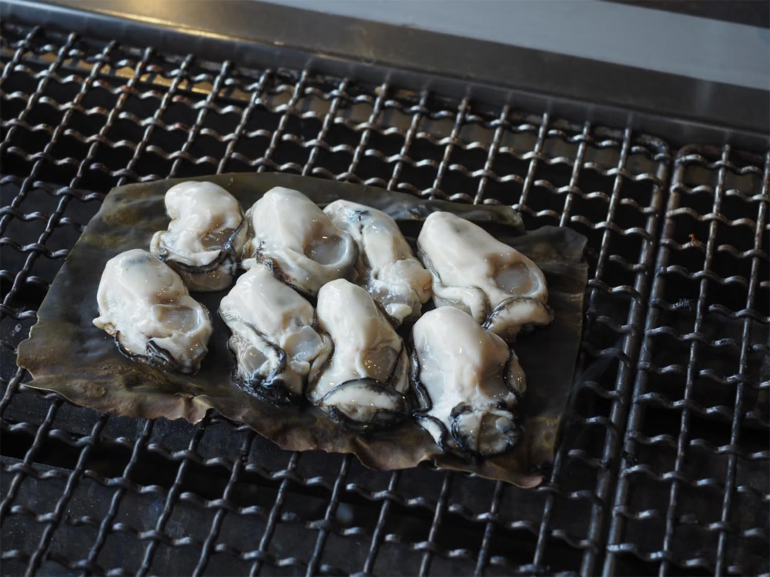 この時期は牡蠣が旬らしく! 牡蠣は殻のまま焼く方法と、昆布の上で身を焼く方法の2通りでいただきました。昆布の上で焼くのが本当においしかった……。
