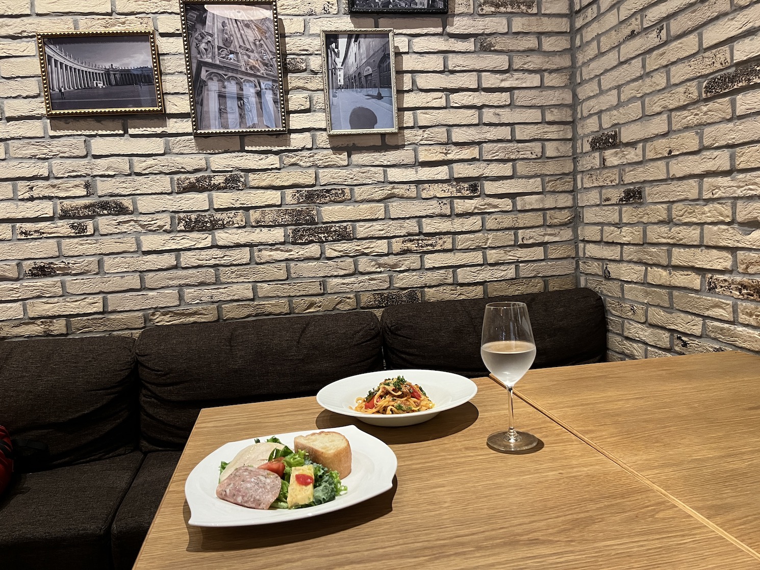 この街のことをよく知らないので、ここは飲食店じゃなくて美容室かもしれない……。そう思って入り口に近づいてみたが、店頭においしそうなパスタの写真とメニューがあってホッとした。堂々と中に入ってみよう。