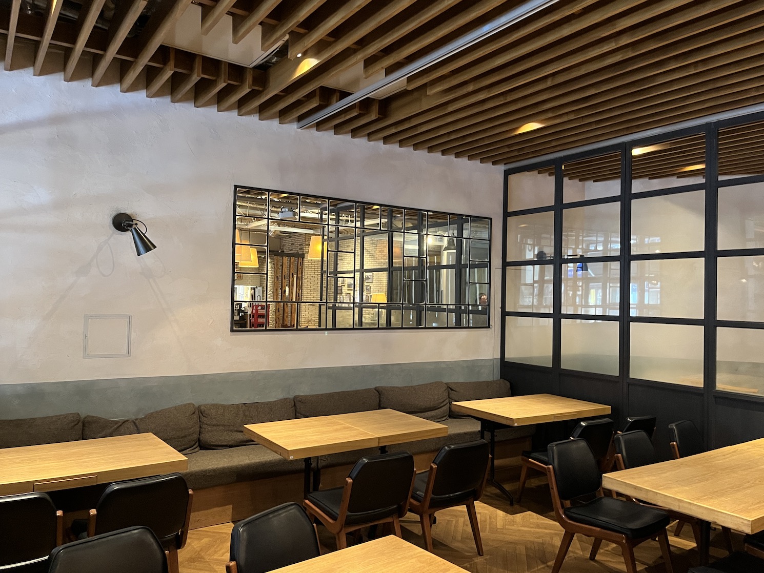 にこやかなスタッフに促されて着席。『bottega 柏店』は、2014年10月にオープンした店とのこと。店名の「bottega」とはイタリア語で「工房」を意味するらしい。また、外の看板についていた “カフェ ビストロ パスタ”というキャッチコピーにもあるように、ビストロのようにしっかりめの食事もできるけれど、パスタやカフェメニューといったカジュアルな使い方もできる店のようだ。