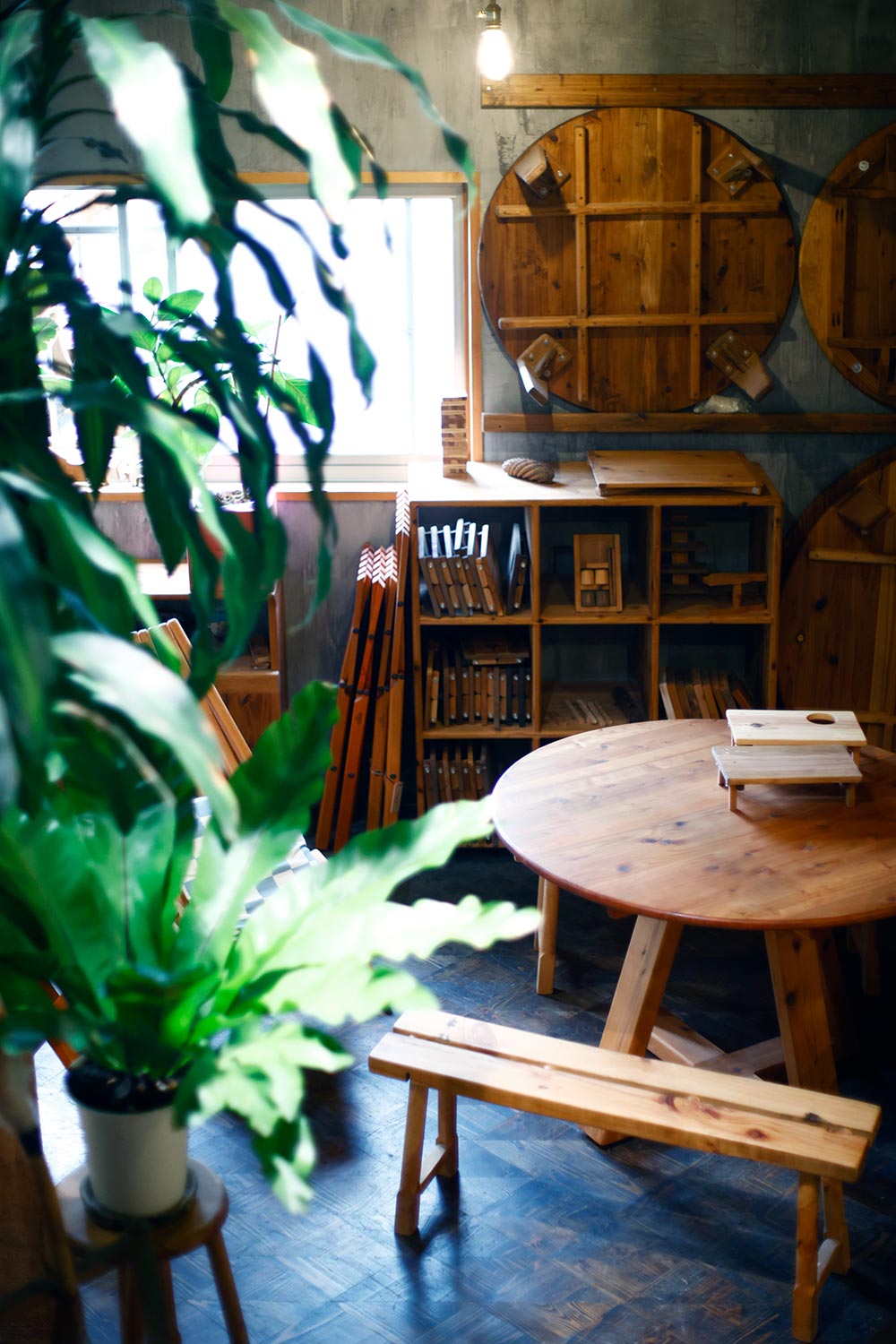 2020年に藤沢から移転したハンドメイド家具の工房。スギの無垢(むく)材にこだわったちゃぶ台やベンチなど生活に寄り添う品を手掛ける。「スギは軽量で香りがよく、色調豊かで木目も美しい。経年変化も楽しめます」と代表の八反田吾郎さん。2024年には製品を置いたカフェも開店。使い心地を確かめてみよう。