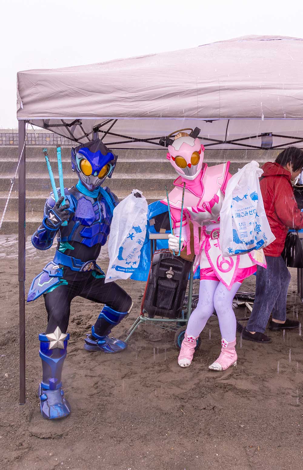 ビーチクリーン活動は今や日本各地で見られるが、ヒーローが一緒にゴミ拾いなんてなかなかない。片瀬東浜海岸で行われるNPO法人「海さくら」のゴミ拾いに、「海洋戦士シーセーバー」が現れたのは2021年のこと。