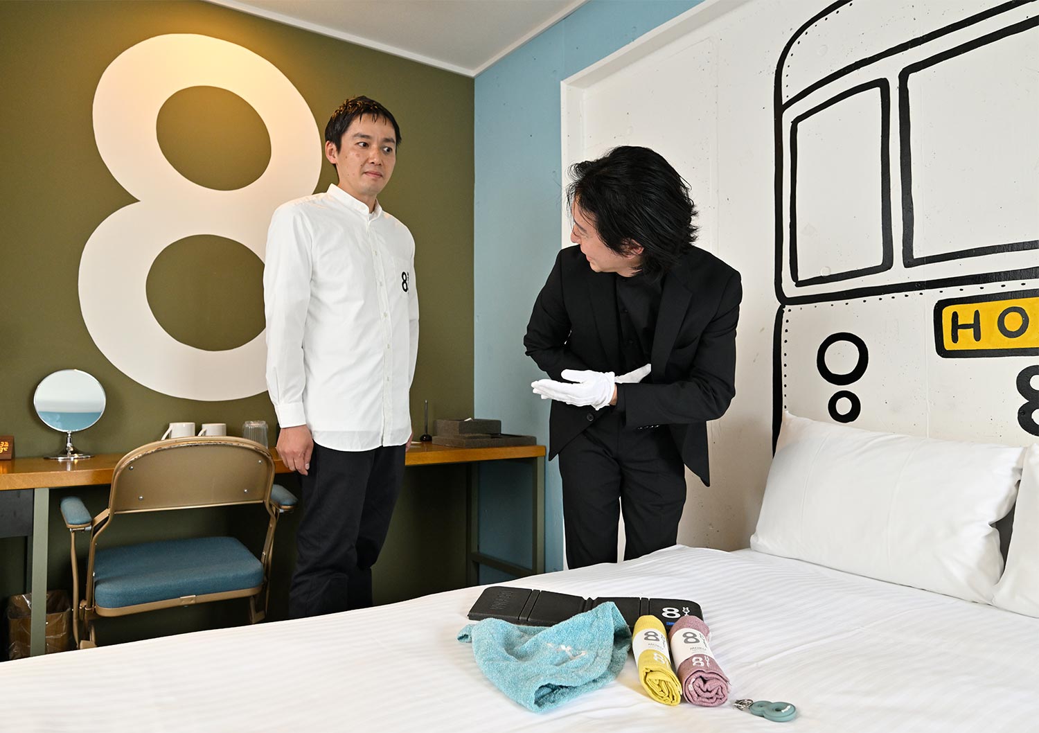 ロビーから客室、グッズにいたるまで8だらけ。これは……意図的なものを感じます。支配人の松井直己さん、どういうことなんですか!