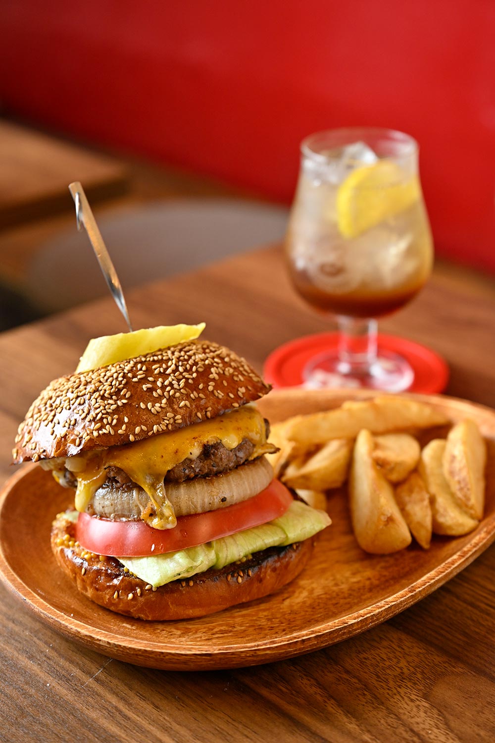 店主・山崎さんの友人のご子息・瑛友くんが店名の由来。言わずもがな、看板メニューの名もエイトバーガー1590円です。「素材の味を感じてほしくて」と、味付けは塩胡椒とハニーマスタードのみ。ガツンと飛び込む肉の旨味はすさまじく、一瞬で虜(とりこ)に。そこへスパイス香るエイトコーラ550円を流し込んでスッキリ。病み付きです。バーガーとコーラの組織的犯行。さすがの私も抗(あらが)えません。