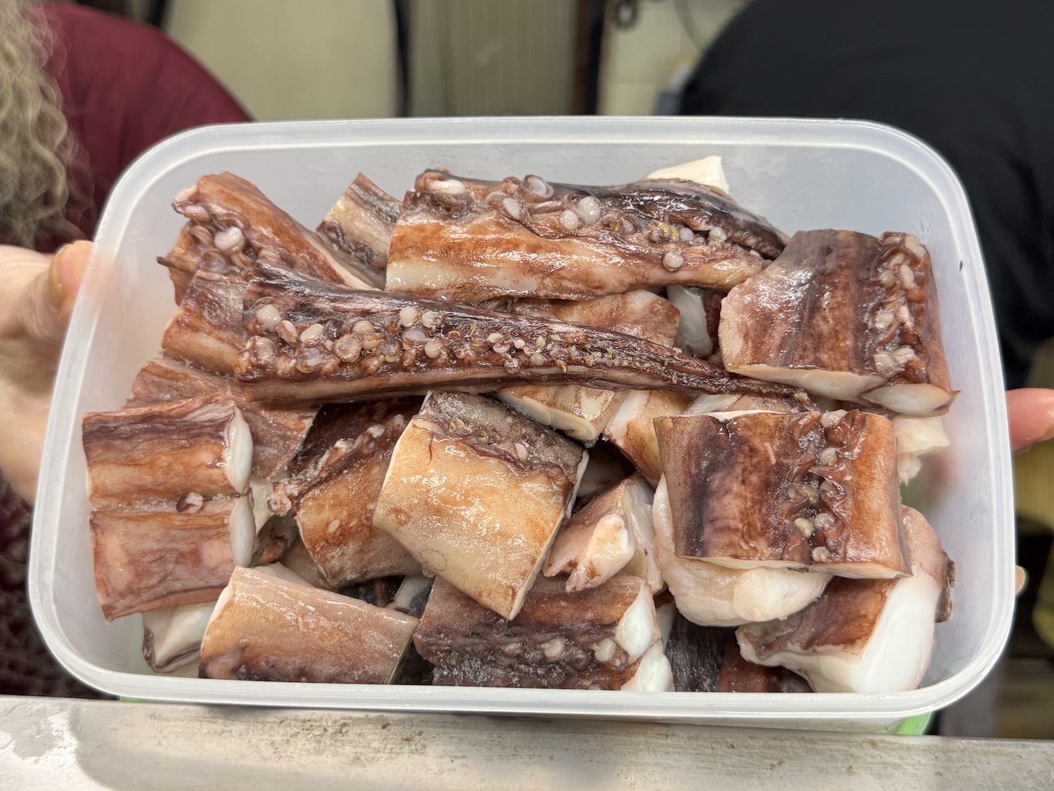 とはいえ、つくる人が変われば、味も変わる。ツユはより濃く、いい方向に変化した。そして、大きく変わったのがげそ天だ。中野さんの本業は、豊洲などの市場内でものを運ぶ荷役の会社経営。当然、卸業者との関係も深く、そのつてで業界最大級サイズのゲソを仕入れ、げそ天に使うようになった。従業員もベテラン揚げ物師の武山きくみさんが加わり、天ぷらの質も向上。こうして見た目と味の方向性は同じながら、新しい『六文そば中延店』が生まれたのだ。