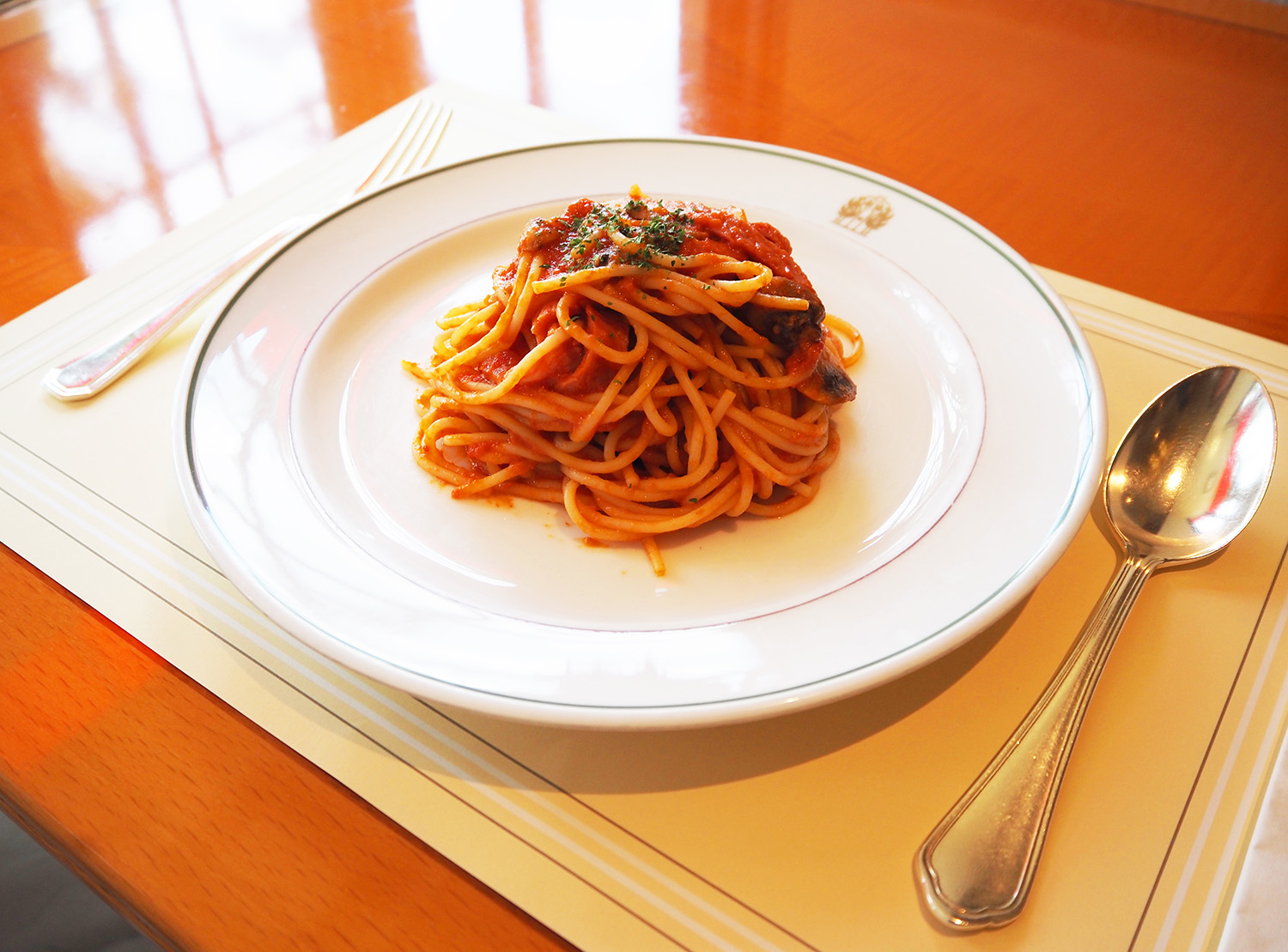 今日は、この『ホテルニューグランド』が発祥といわれる料理を本館1階『コーヒーハウス ザ・カフェ』に食べに来た。それは、昭和の洋食メニュー大定番、スパゲッティ ナポリタン! なのだが……。