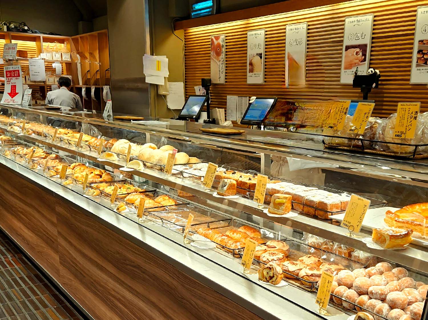 パンは、毎朝同じビルの7階と8階にある工場で作る手作り焼きたて。配送のタイムロスなく、上から下に運ばれてきます。