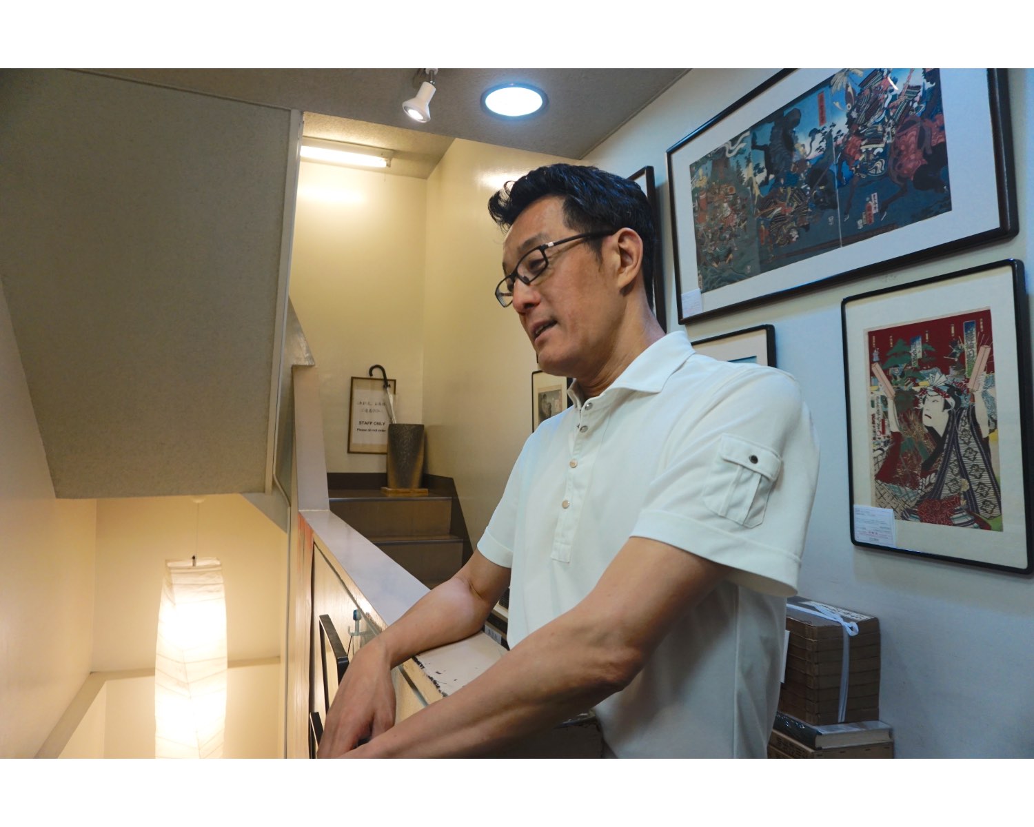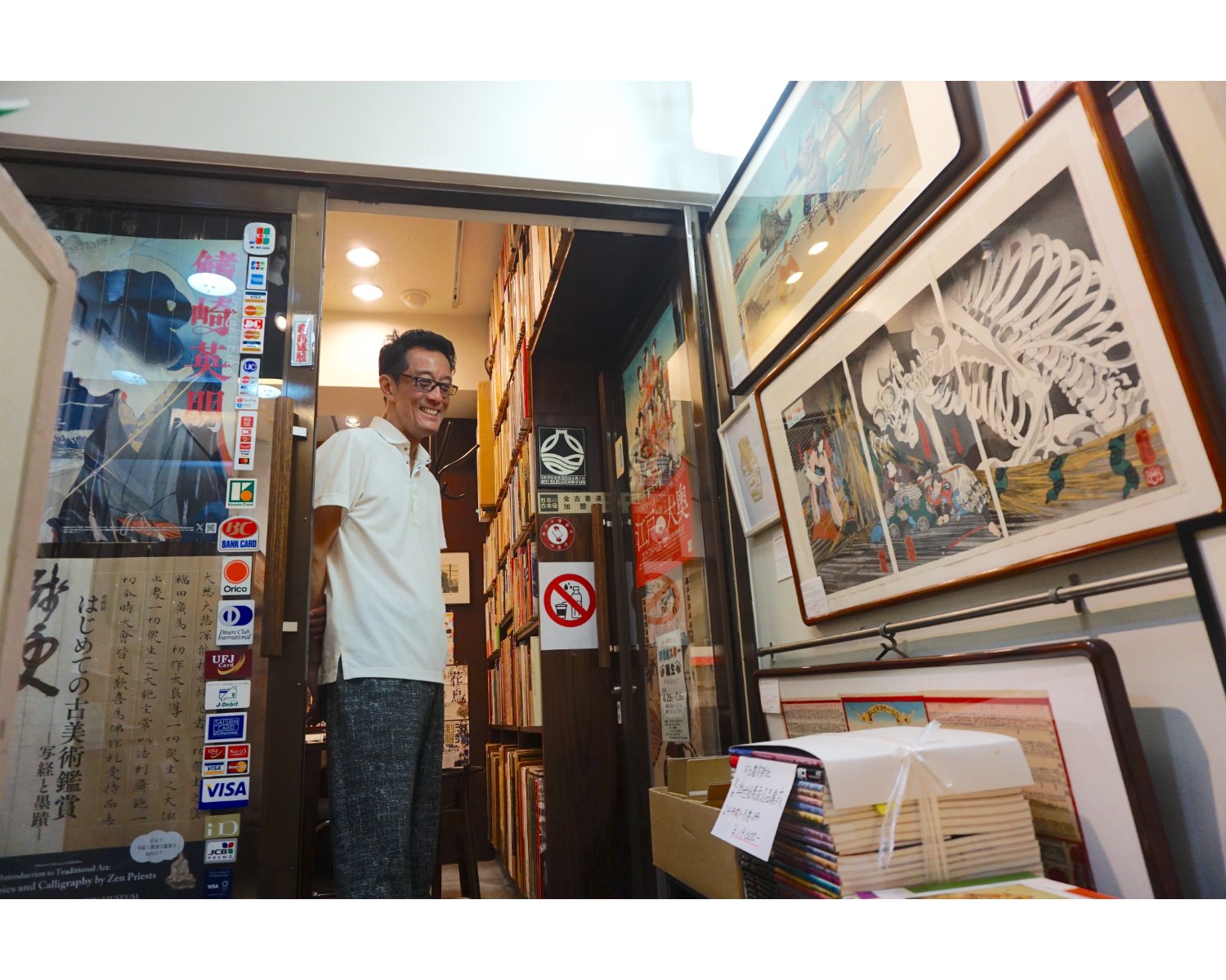 お店の1階は、占いの書籍や道具を扱うフロアになっています。浮世絵を扱うフロアは2階にあり、階段を上がって入るのでちょっとドキドキ。店主の原敏之さんは、お客さんが話を聞きたそうなときに声をかけるスタイルで接客しているそう。購入したい人はもちろん、「本物の浮世絵を見てみたい!」という気持ちで訪れてもOKなのだそうです。ということで、安心してお店に足を踏み入れましょう!
