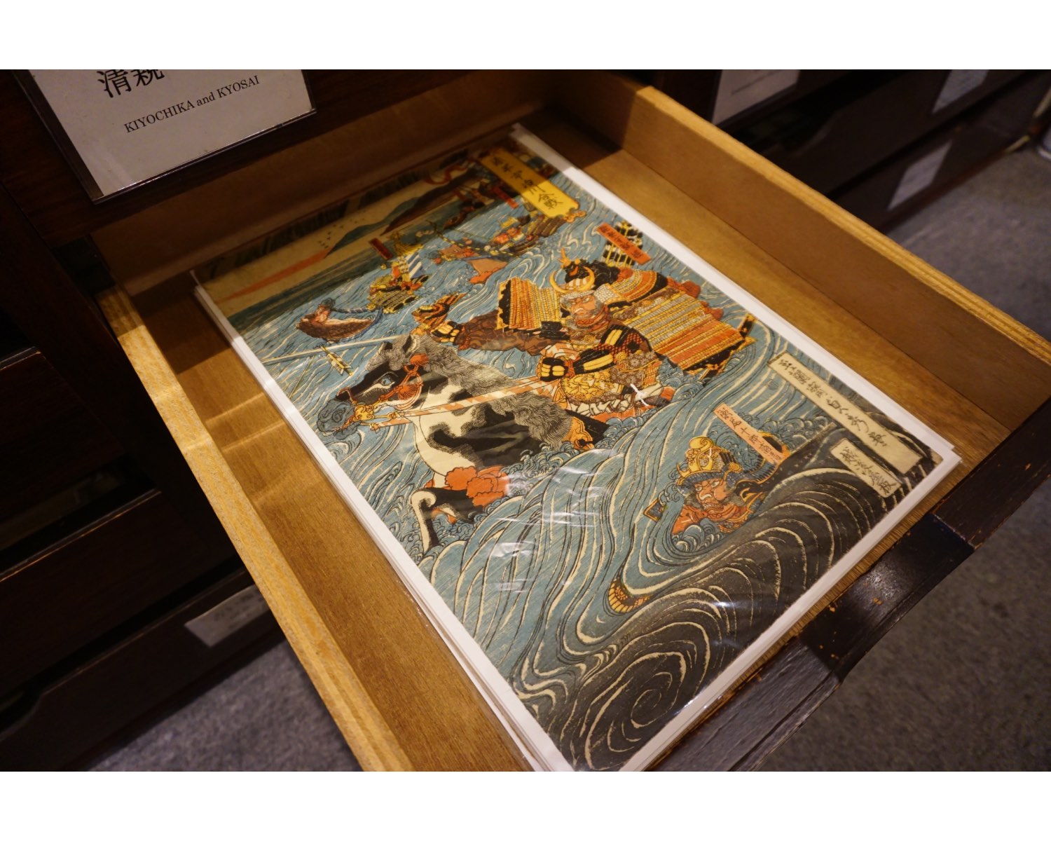 引き出しの中には、江戸時代や明治時代に刷られた浮世絵の実物が。