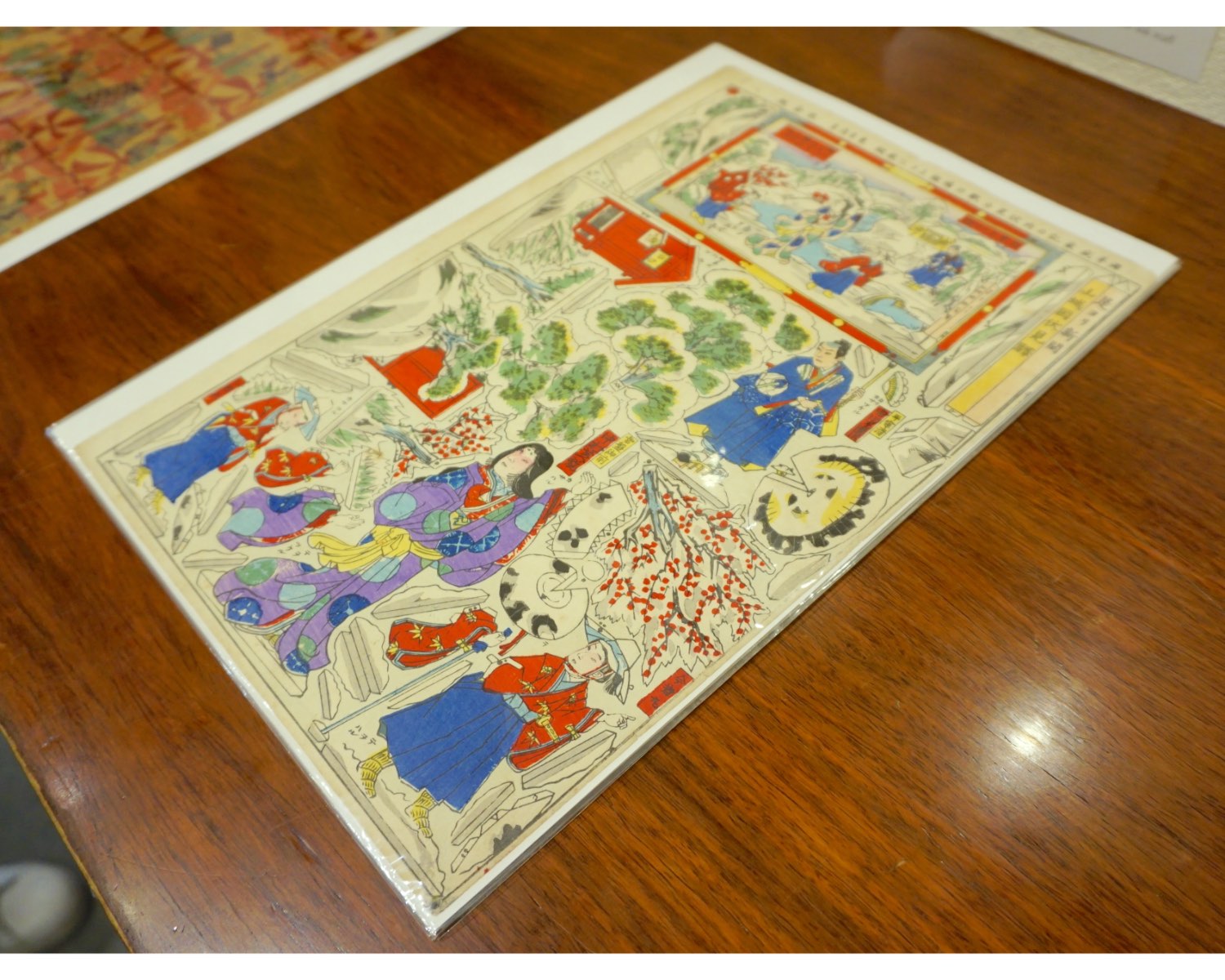 原さん:全部切り抜いて配置すると、この四角の中の完成図のようになるらしいんです。立版古は結構たくさん作られたもので、明治時代の日清戦争を描いたものがあったりします。人形を描いたものもたまにありますよ。