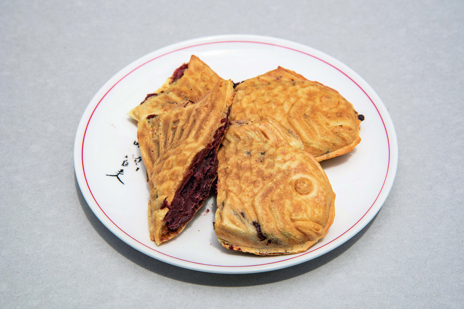 1953年創業。流れるような動きで丹念に焼かれるたいやきを目の前で見ることができる。薄く、パリッと香ばしい生地の中にはつぶ餡がたっぷり入る。1尾210円。