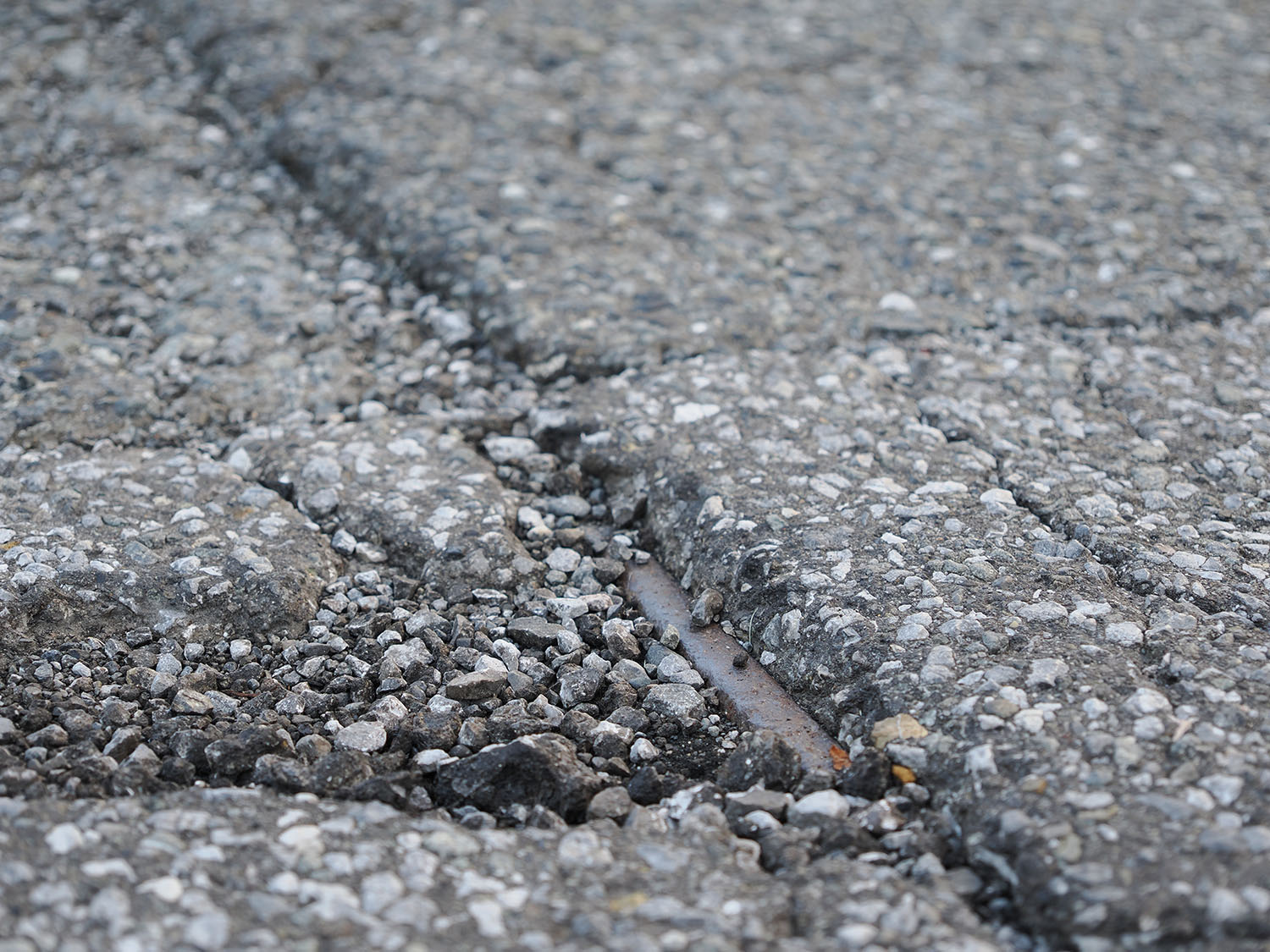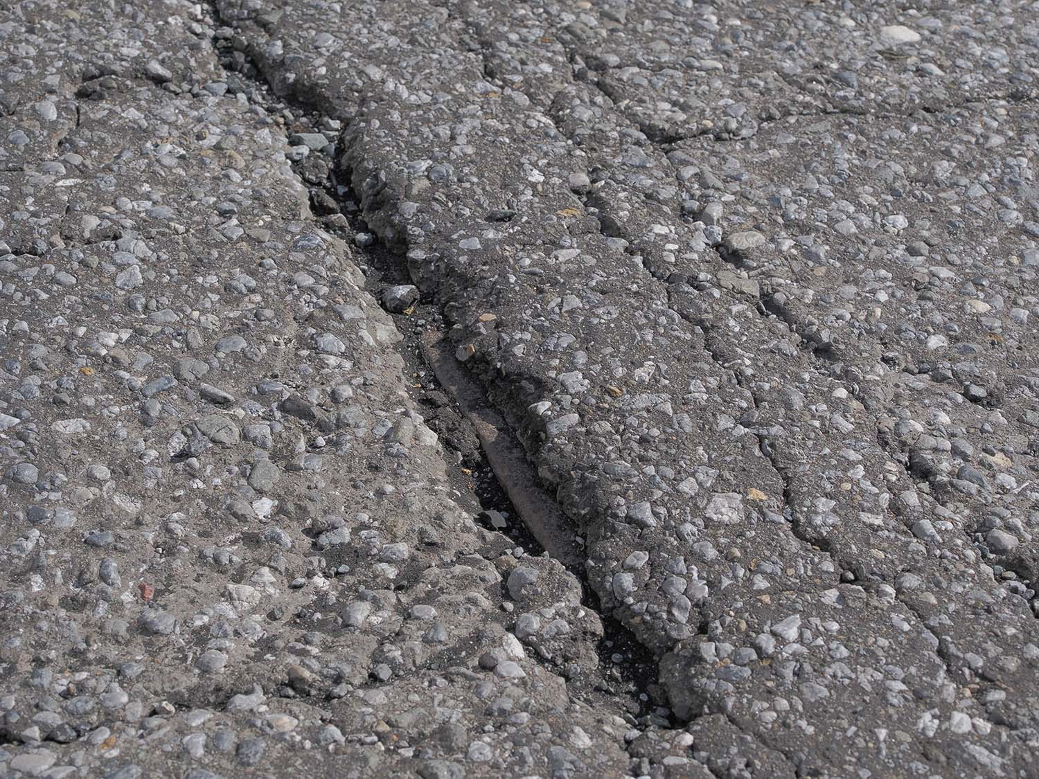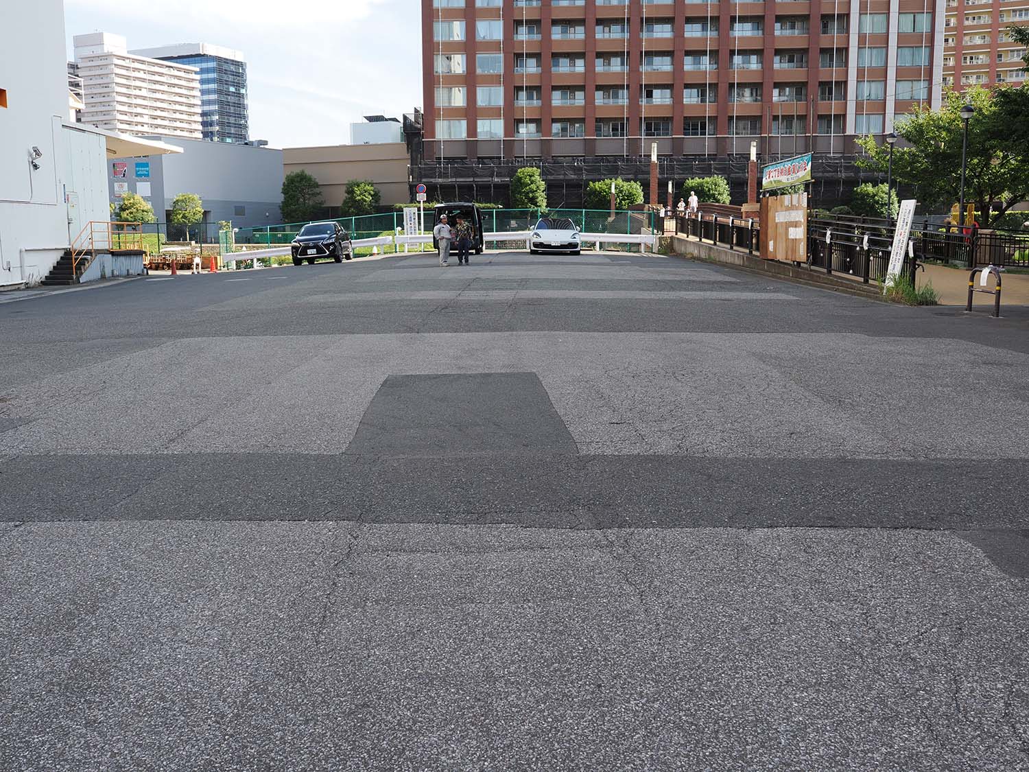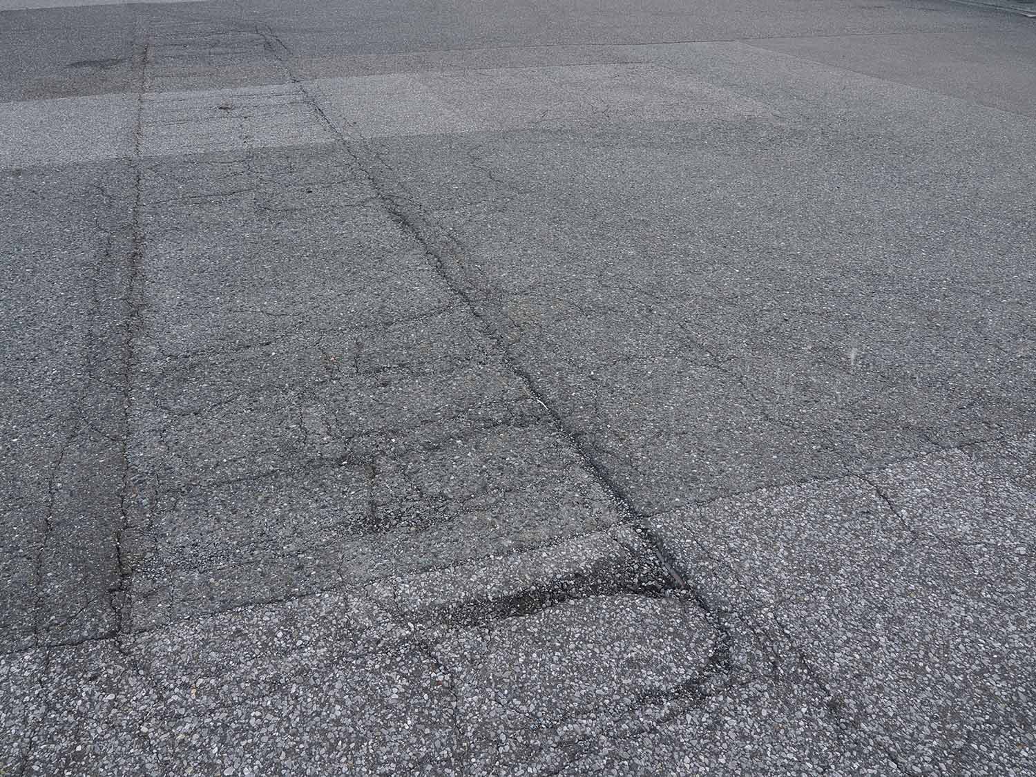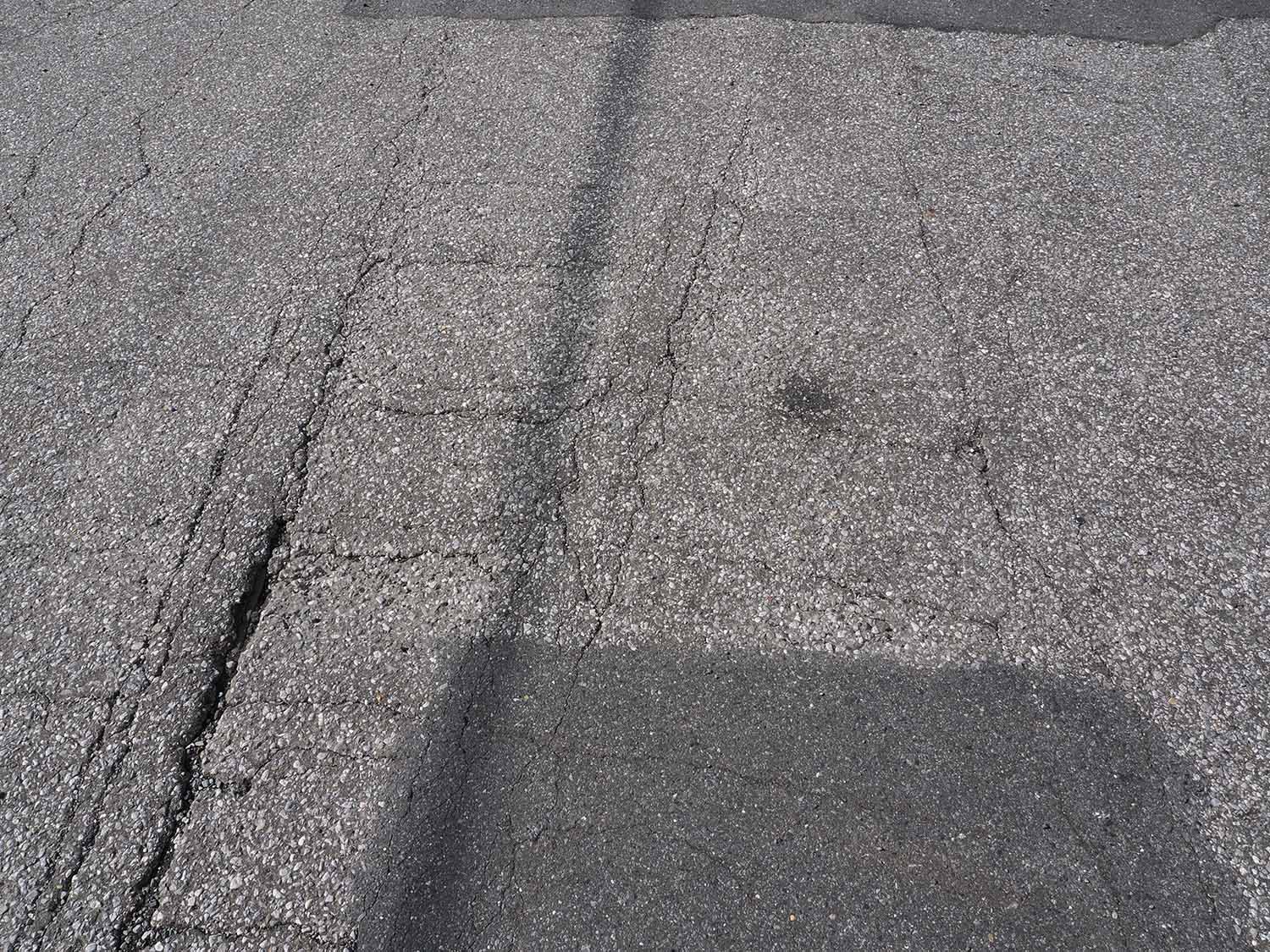 埋め立て地一角の空間に都電線路幅のヒビを見つける
