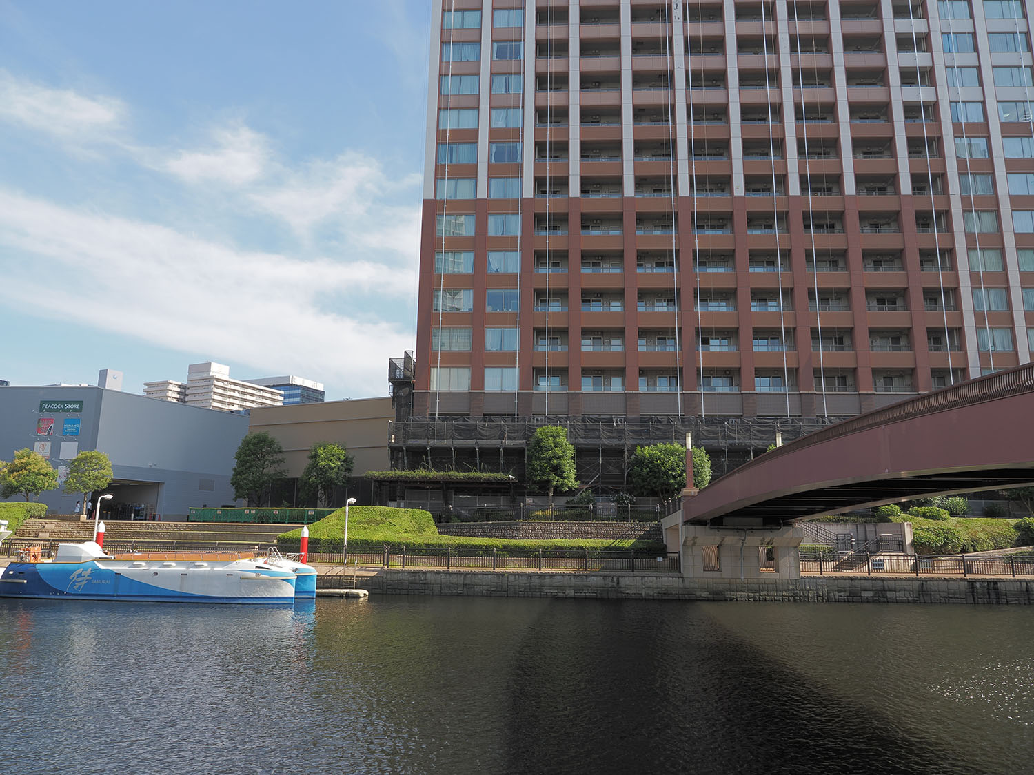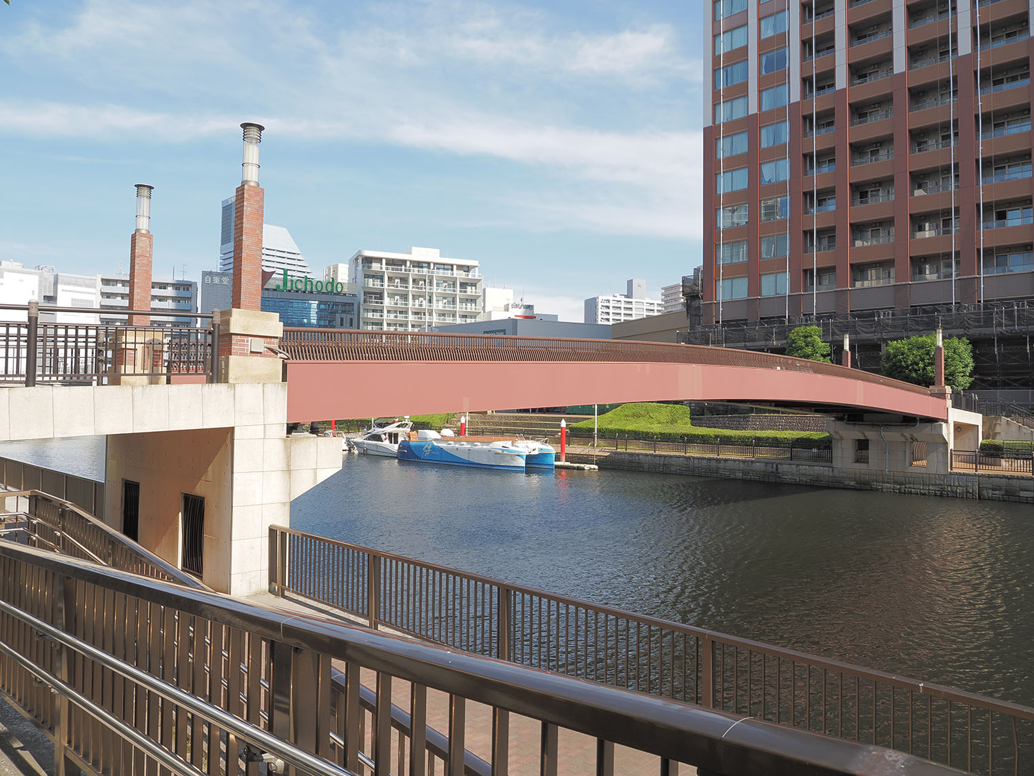その痕跡を辿ろうと、芝浦2丁目交差点へ立ちます。左手には冷蔵会社の倉庫、正面には運河を隔てて、高層マンションが聳(そび)える行き止まり道路の空間があります。マンションが立つ場所は「芝浦アイランド」というニュータウンですが、かつての芝浦工場の跡地です。