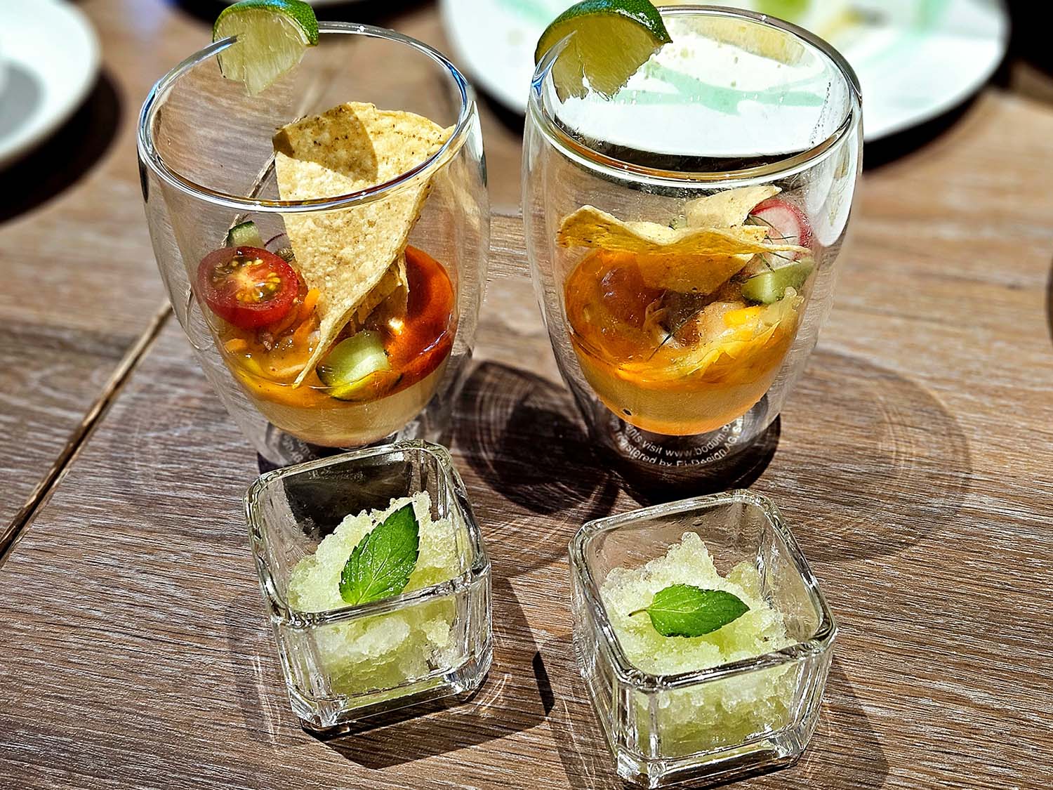 まずファーストディッシュのマスカットグラニテの爽やかな味わいと冷たさで、暑さを消し去ってくれるのがうれしい。