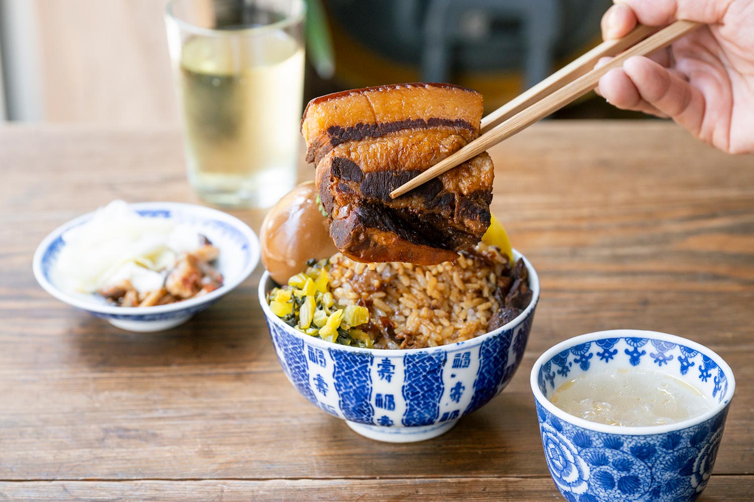 無機質なデザインの空間に吊り下がるのは、鹿の角のような葉姿をしたシダ、シダ、シダ!「ビカクシダと台湾が好きで、シダだらけの魯肉飯屋さんを始めました」と店主の小林雄一郎さん。魯肉飯は、皮付きの豚バラ肉がドーンとのった台南スタイル。脂さっぱり、味付けも甘すぎずいいあんばい。味玉、たくあん、パクチーで味変しながら、あっという間にごちそうさま!
