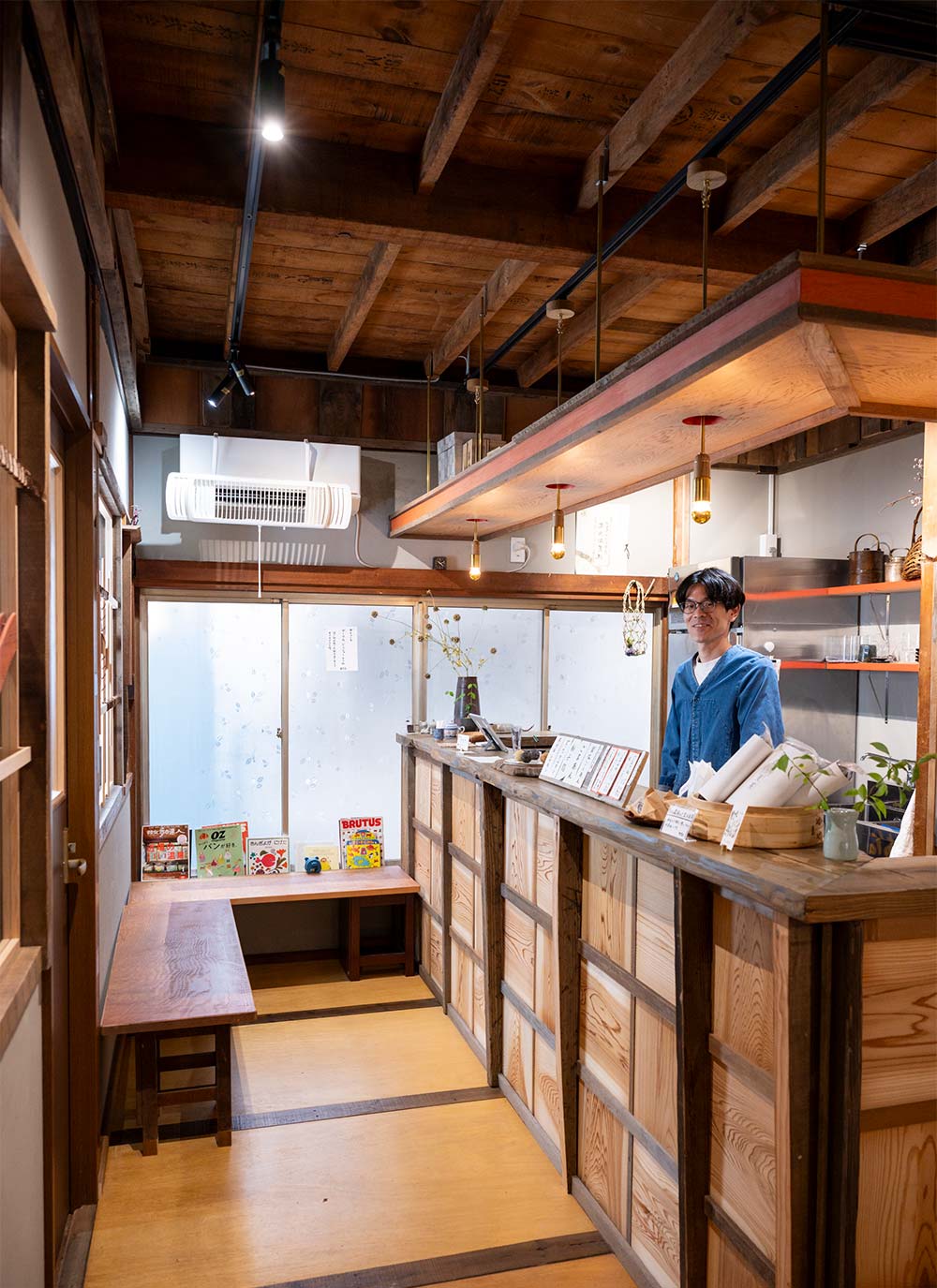 「かつては大変なにぎわいだったそうです」と『古民家カフェ こぐま』の店主・山中さん。一帯は、東京大空襲を免れたため、戦前の建物が今でも残る。こぐまの建物も昭和2年(1927)に建てられたもの。「五軒長屋の一つで、薬局だったんですよ。ほら」と言って入り口を指差す。「医薬品 クスリ」の文字があった。コチ、コチ、コチ……。喧騒(けんそう)から遮断されたノスタルジックな空間で響く、時を刻む振り子時計の音。あれ、ここは東京? 昭和? まさかの異世界? なんとも不思議で落ち着く空間。ずっといたいけど、そろそろ日も傾いてくる。