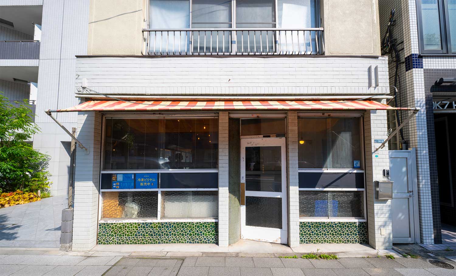 水戸街道をまっすぐ進むと、白い木枠に、タイル張り、レトロモダンな建物があった。ガラス扉に小さく「野島商店」と書いてある。扉を開けると、なぜか壁に鏡が並んで貼ってある。「ここは理髪店だったんですよ。これはドレッサーの鏡でした」と店主の野島さん。早速注文すると、エキゾチックな壺からビリヤニをよそってくれた。店内にはカラフルな壺がたくさん並び、販売もしているという。