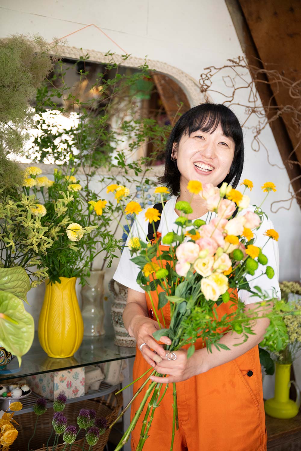 以前は小料理屋だった推定築70年以上の二階屋で2023年1月にオープンした生花店。一瞬戸惑う店名は、「お花にもこの店にもストーリーがある。“花だけじゃない”って気持ちで名付けました」と加藤美咲さん。大田市場で買い付ける花は1本でも存在感のあるものばかり。直接手に取って選ばせてくれるのがありがたい。1本400円~。