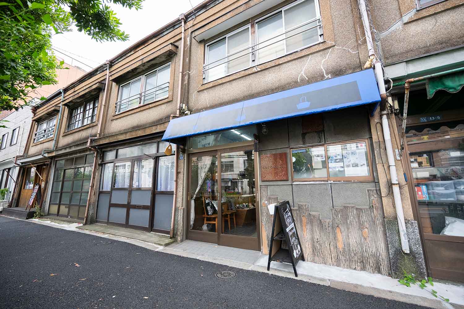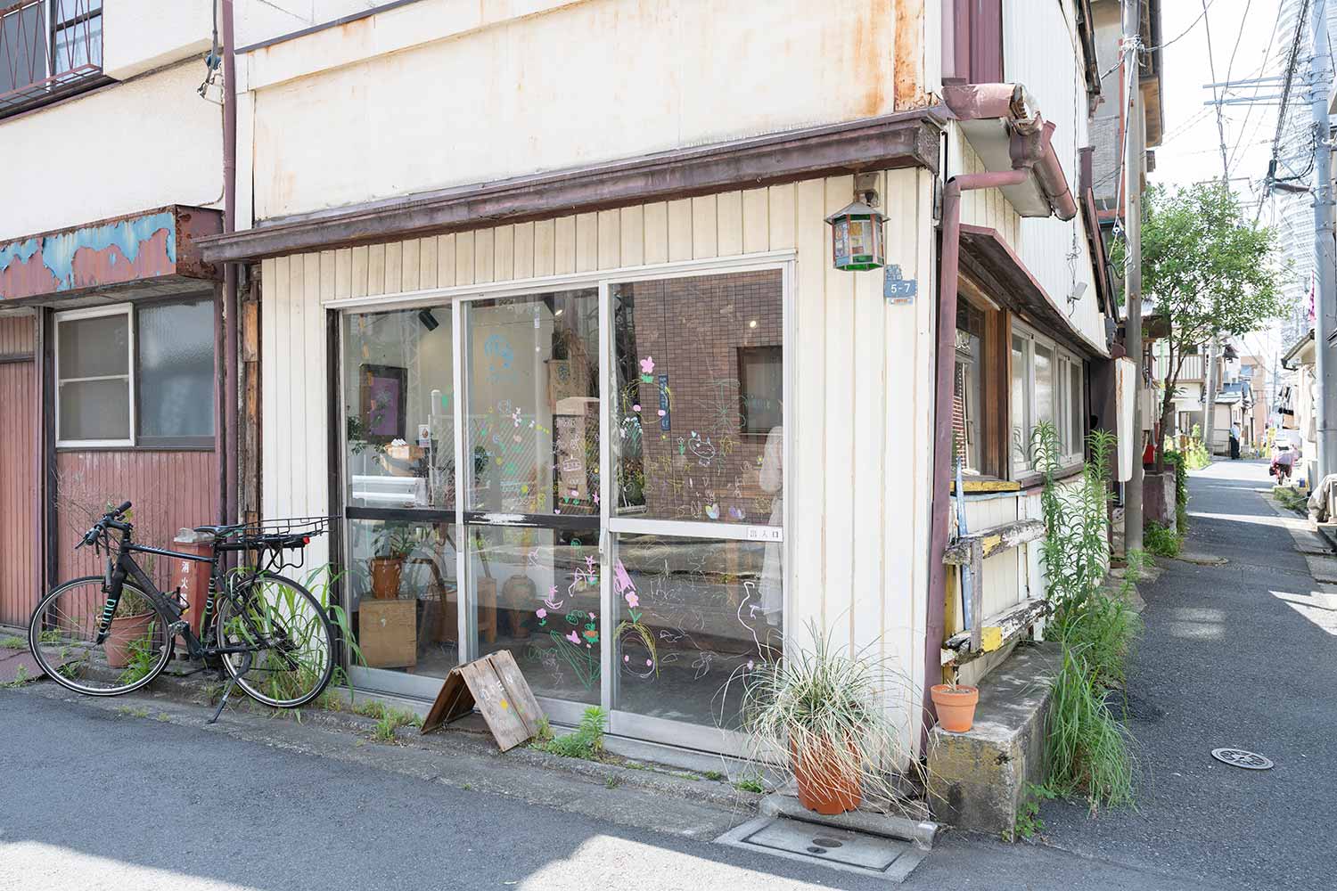 「かつてはビスケット工場でした」と教えてくれたのは、すぐ裏の路地の一軒家で『喫茶 白蛇伝』を営む吉井ひとみさん。こちらは昔四軒長屋で、お母さまがもんじゃ屋を開いていたとか。「父の方は映画館のフィルム運び。この辺りは4、5軒映画館があったんです。父は亀戸から戦争で焼け出されて来て、この辺りはそんな人が集まったそうです。路地も子供がギューギューになってベーゴマで遊んでました」。昔を知る地元っ子から思い出話を気軽に聞けるのも街の財産だろう。