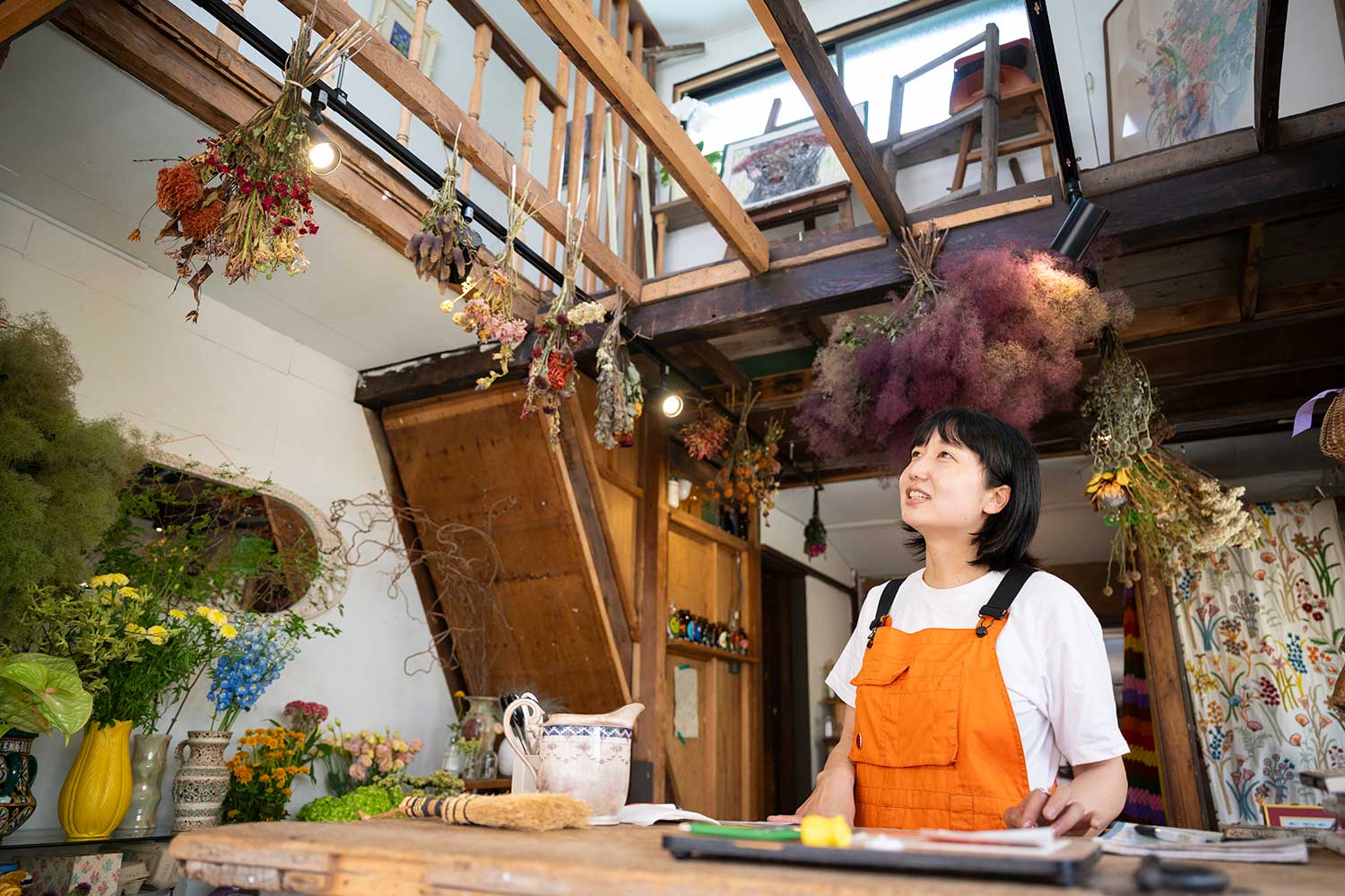 京島の踏切脇では、一見花屋に見えない『NOT FLOWER』を発見。店主の加藤美咲さんは「面白い街があるよと聞いてやって来ました。古い建物がよく使われていて、みんなDIYしてるんですよね。街の人は“ザ・下町人情”って感じで、『値段書いた方がいいよ』『看板付けないの』と優しいおせっかいを焼いてくれます」と話す。