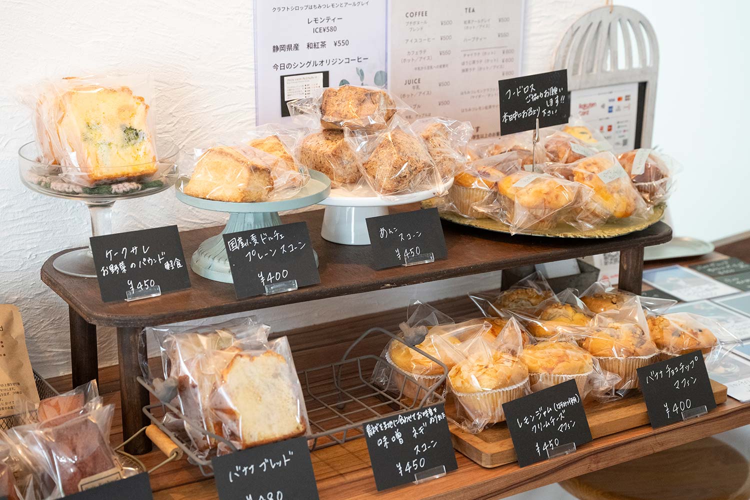 2017年に開店し、その近所へ2024年に移転した焼き菓子店。栄養学を学んだ店主の岩上康代さんが、国産材料に極力こだわり、添加物を使わず体に優しい素朴な味わいのクッキーやスコーン、マフィンやケークサレなどを提供する。8席のカフェスペースもあり、各10種類ほどあるお手製の飲み物やスイーツで甘いひとときを。