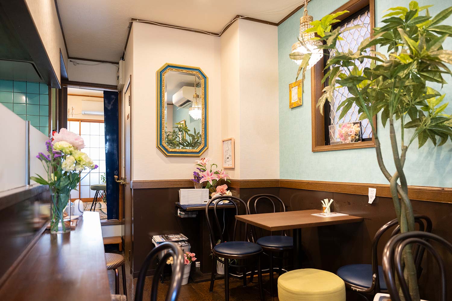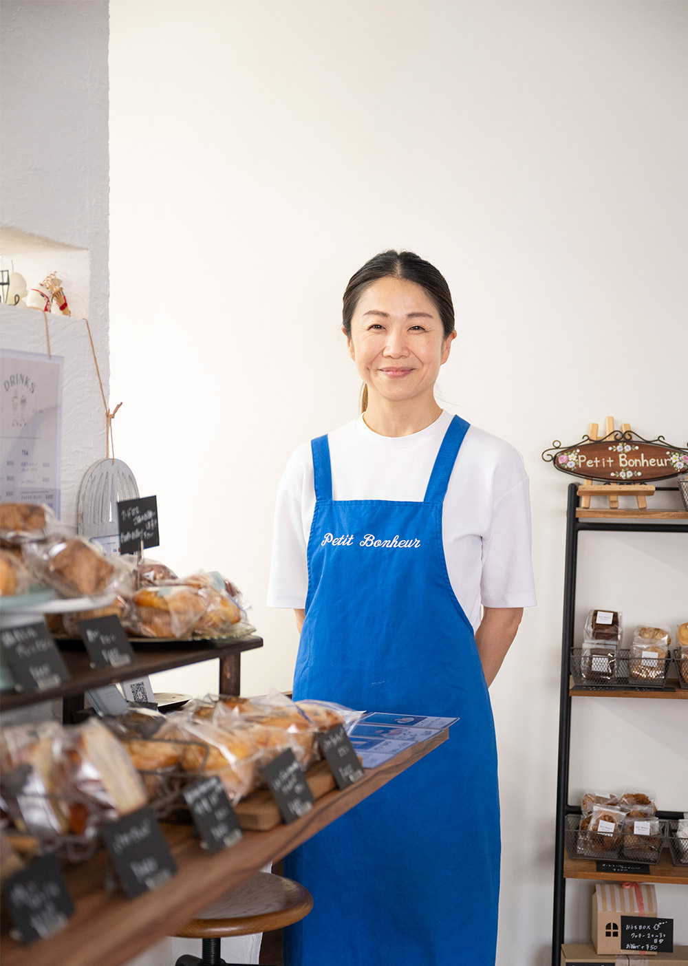 『Petit Bonheur』はおしゃれな今風のスイーツカフェ。だけど老いも若きも訪れるのが下町的安心感。「時間によっては居酒屋みたいになることも。お客さん同士でしゃべっちゃって」と、店主の岩上康代さんが笑う。