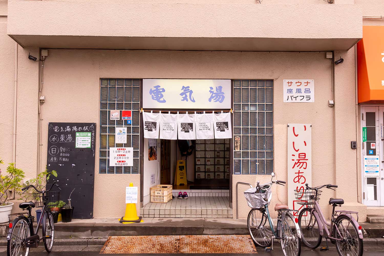現役の電気湯。約20年前は区内に22軒(現在16軒)の銭湯があったが、うち12軒が川沿い・暗渠沿いに立っていた(髙山調べ)。