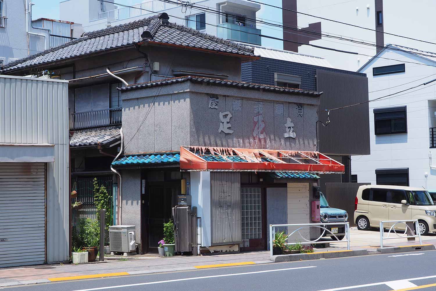 このエリアで目立つ暗渠は、通りにも冠されている曳舟川だ。曳舟川跡に向かって立つ「瓦」と書かれた店舗【11】が、ずっと気になっていた。関係者に尋ねてみると「聞いた話だけれど、瓦の材料なんかを曳舟川で運んでいたらしいですよ」。