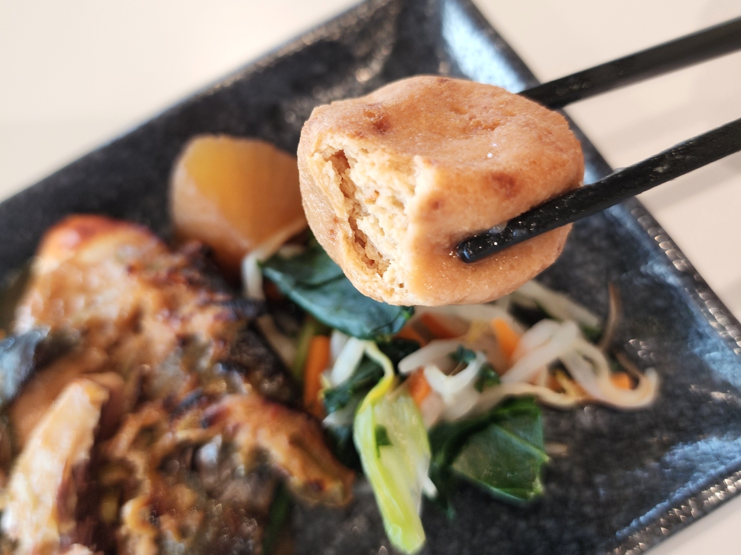 まずはメインのサバから。ふっくらとしたサバと香ばしいねぎ味噌が相性抜群! これはご飯が進むやつ。