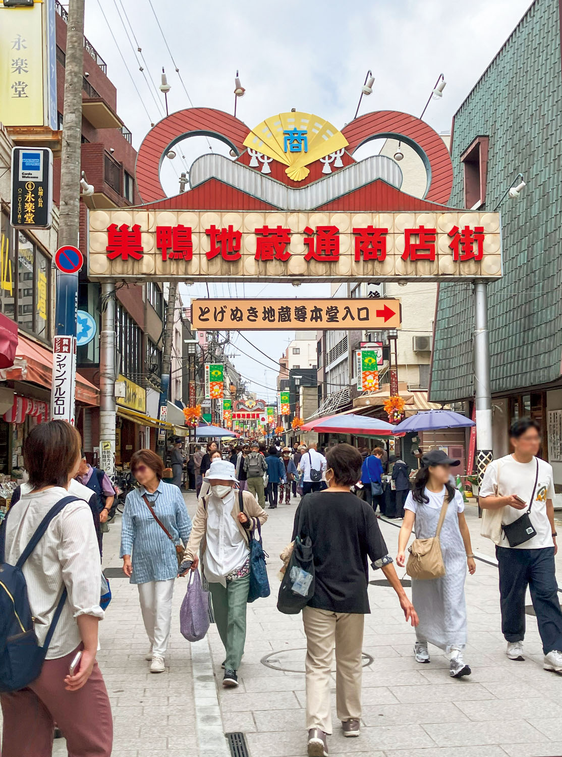 全長約780m、約200店舗が軒を連ねる商店街で、髙岩寺参詣の人向けと、地域密着型の店舗が混在している。塩大福やもなかに代表される和菓子、洋菓子、話題のパン屋など、名物店がいっぱいだ。赤パンツをはじめとした、年配者向けの衣料品店が多いのも特徴。4の付く日はとげぬき地蔵の縁日。