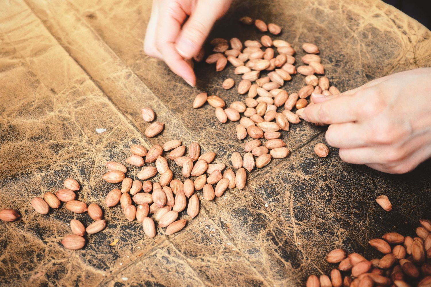 「千葉と二宮では乾かし方が違うんです。どちらも掘り起こした後、葉を下に、身を上にして乾かすのは一緒なのですが、千葉では乾いたらそのまま山積みにして風干しし、二宮では脱莢(だっきょう)してさらに天日干し。そうすることでコクが生まれます。種の違いもあるかもしれませんが、先代いわく、二宮の落花生の方が脂肪分があると」