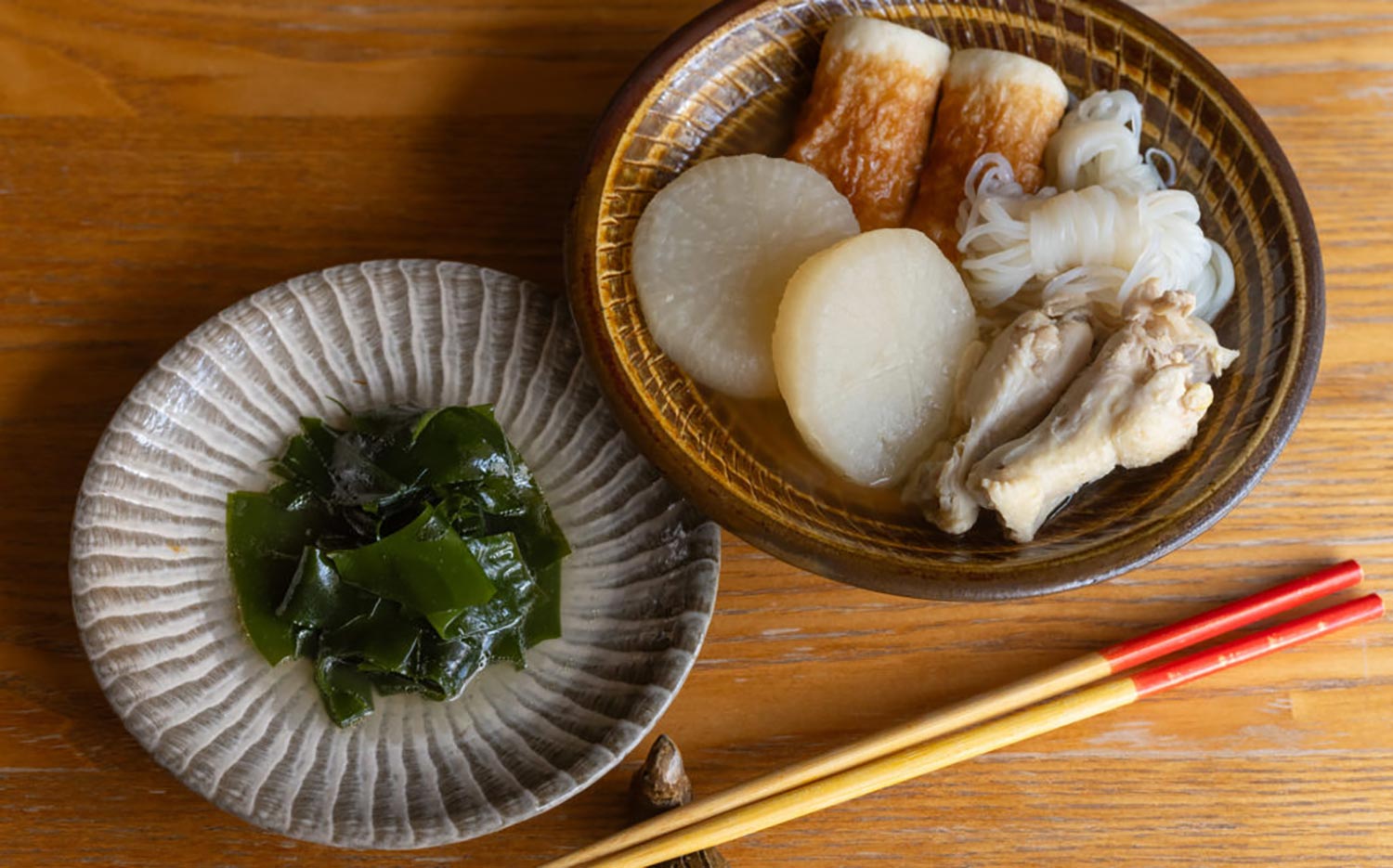 わかめはおでん汁を抱き込み、磯の香りがふんわりと広がってぬくもりのある味わいとなる。栄養面はもちろんだが、心にもやさしく作用しそうだ。