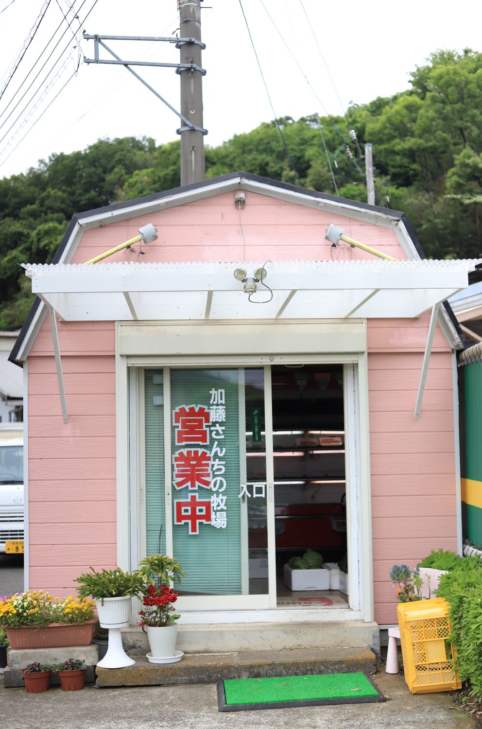 戦後、初代が酪農業を始め、2000年に3代目の片倉幸一さんが継承。「その時からジャージー牛を2頭飼いはじめ、今は17頭。ウチの田んぼの裏作で育てた牧草を、エサに与えています」。子供たちに牧場の楽しさ・大変さを伝えるため、地元小学校の搾乳体験も受け入れている。「一般の方の見学は敷地外からになるけど、手が空いてたら中も案内しますよ~」。☎090-5566-4523