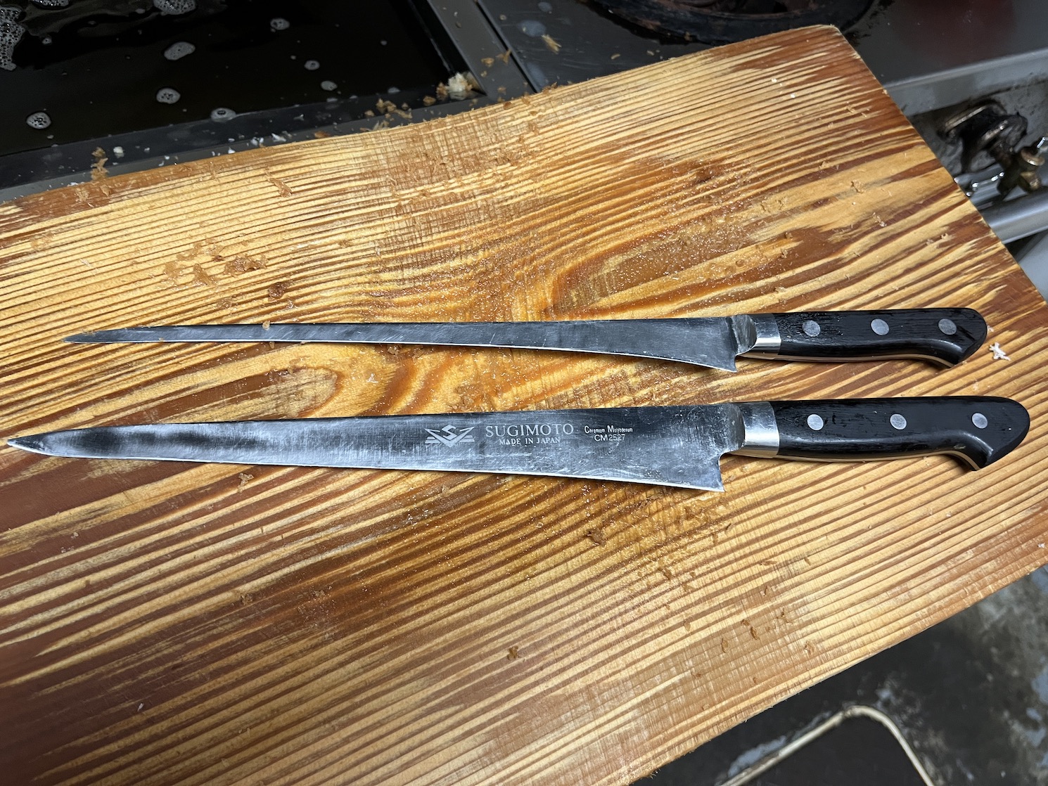とんかつに夢中になっていたが、店主が手にしていた変わった形の包丁が気になった。興味深い形ですね、それは特注ですか?