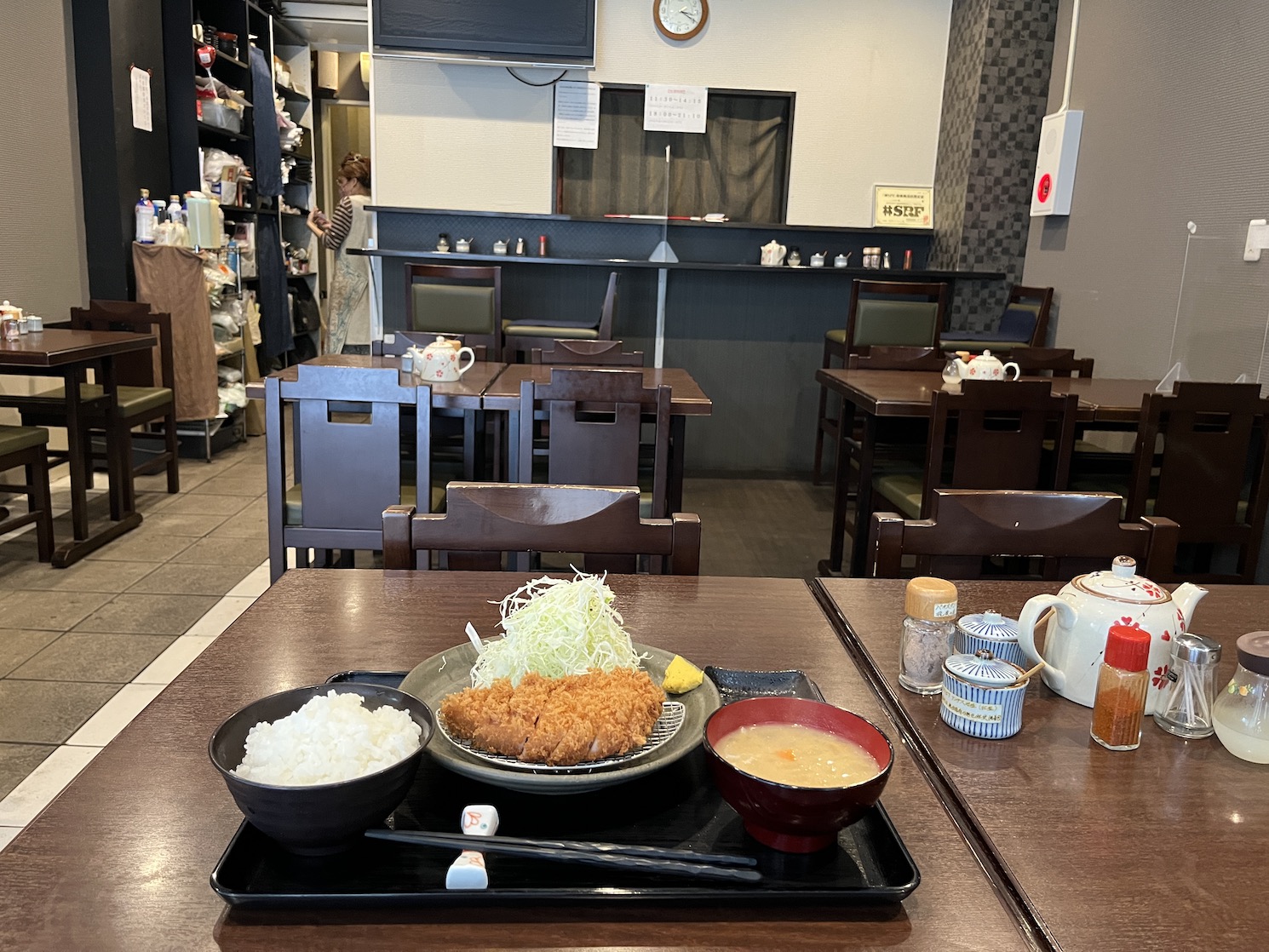 とんかつの旨味を噛み締めながら、千切りキャベツをパリポリといただき、豚汁をゴクリ……。この豚汁、おいしい。なんなんだ、この甘みは!