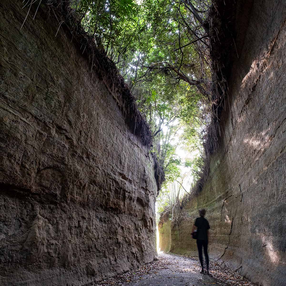 素掘り跡を間近に見られる生活の道「金谷郷(かなやごう)の切り通し」