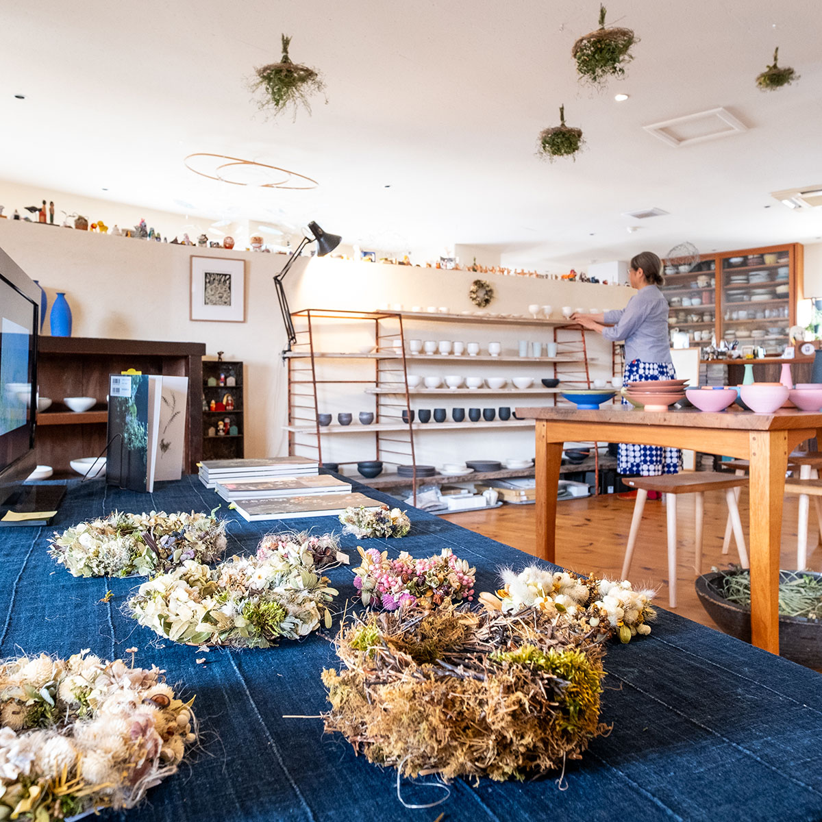 海外でのサッカー選手としての経験を通じ、環境問題や気候変動に対して意識を高めた品田彩来(あやき)さんが、帰国後に始めた工房で、日本古来の伝統手法である正(しょう)藍染と本藍染による作品づくりに取り組む。コースターやTシャツなど作品販売のほか、要予約でワークショップも開催(詳細はHP参照)。