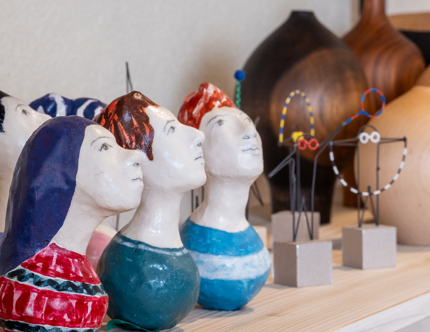 「ミスマッチが結構面白いんですよ」と異色の組み合わせの二人展などを多くプロデュースする表田典子さんのギャラリー。焼き物、ガラス、鉄、木、織物など工芸作品の展示・販売が中心で、時には版画や絵画も。内容は月替わりでブログで告知している。