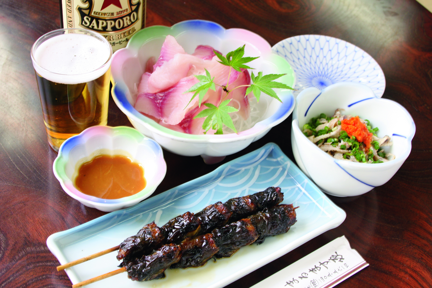 昭和3年(1928)に酒屋として開業。戦後大衆酒場となった。飴色の壁や天井が歴史を感じさせる。清酒1合230円~、もつにこみ340円、串かつ2本380円という安さが魅力。常連も多く、女将さんが切り盛りする粋な大人の集う店だ。